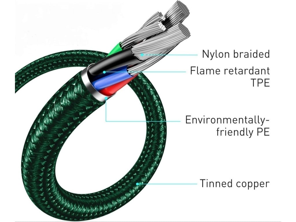 این کابل USB به Type-C، طولی معادل 1 متر دارد. به دور 5 رشتهسیم بههمتنیدهی آن، روکشی نسوز از جنس TPE و سپس روکش دیگری از جنس PE کشیده شدهاست. درنهایت پوششی بافتهشده از پلاستیک ساختار بدنهی این کابل را تکمیل و مقاومت آن دربرابر آسیبهای روزانهای همچون کشش، پارگی و... را چند برابر میکند. علاوهبر اینها، کانتورهای این کابل از نوع SR هستند. این مدل طراحی باعث میشود تا مواردی از قبیل خمش بیشازحد نتوانند باعث پارگی و قطع اتصالات کابل شوند.