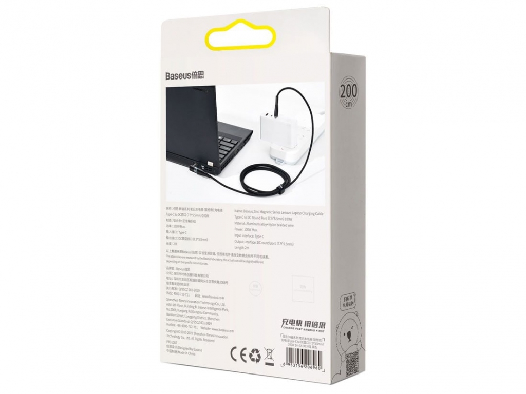 | مشخصات کابل شارژ مغناطیسی سوزنی لپ تاپ لنوو بیسوس Baseus Zinc Lenovo Type-C to DC Round Port (7.9*5.5mm) 2m | |