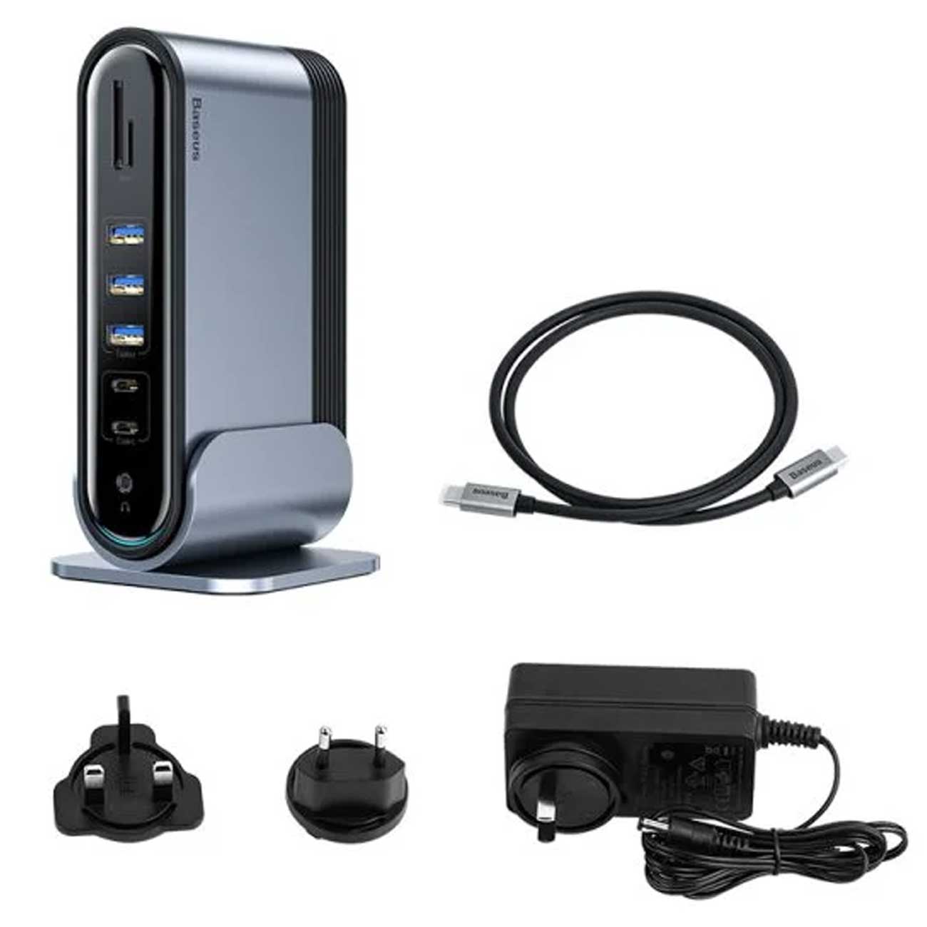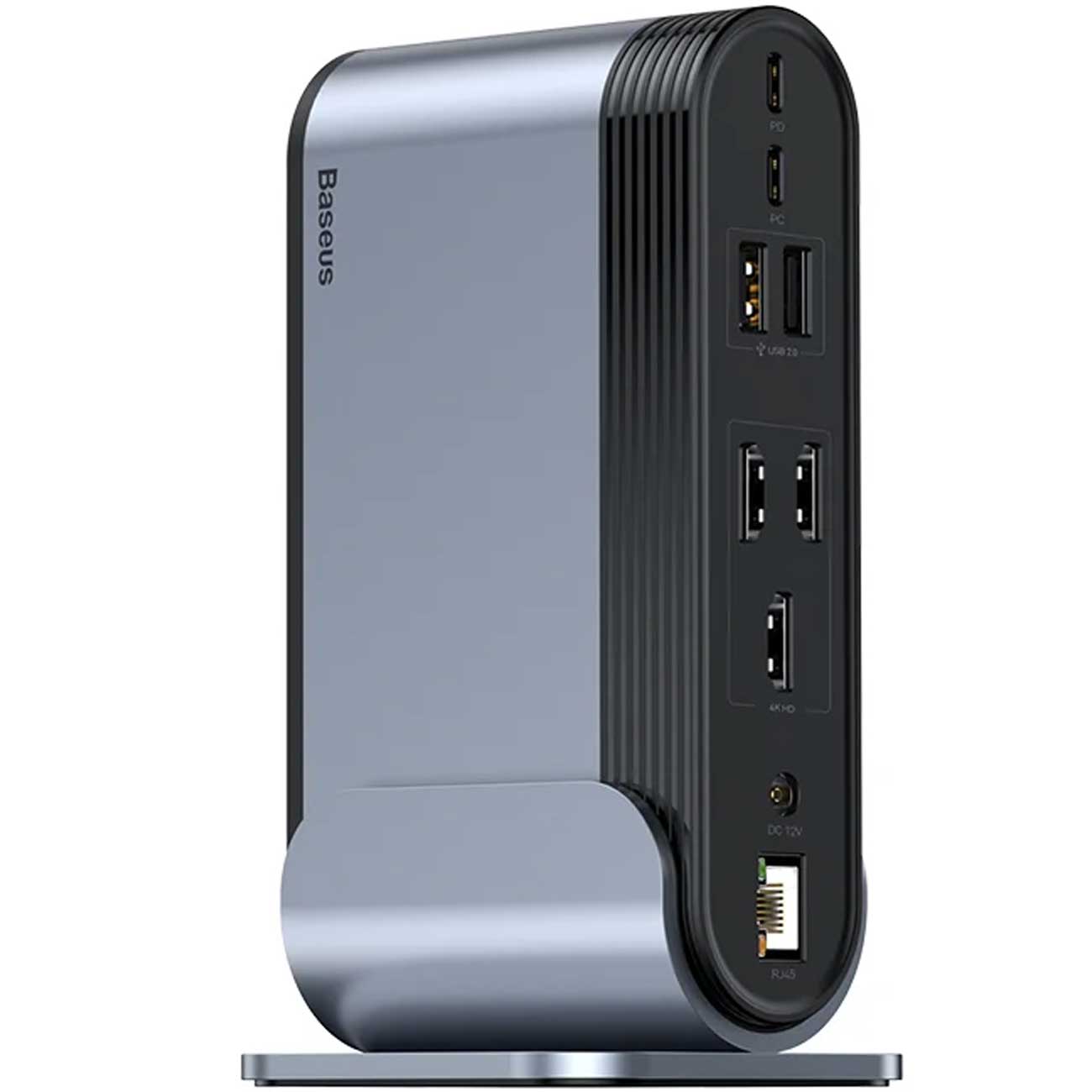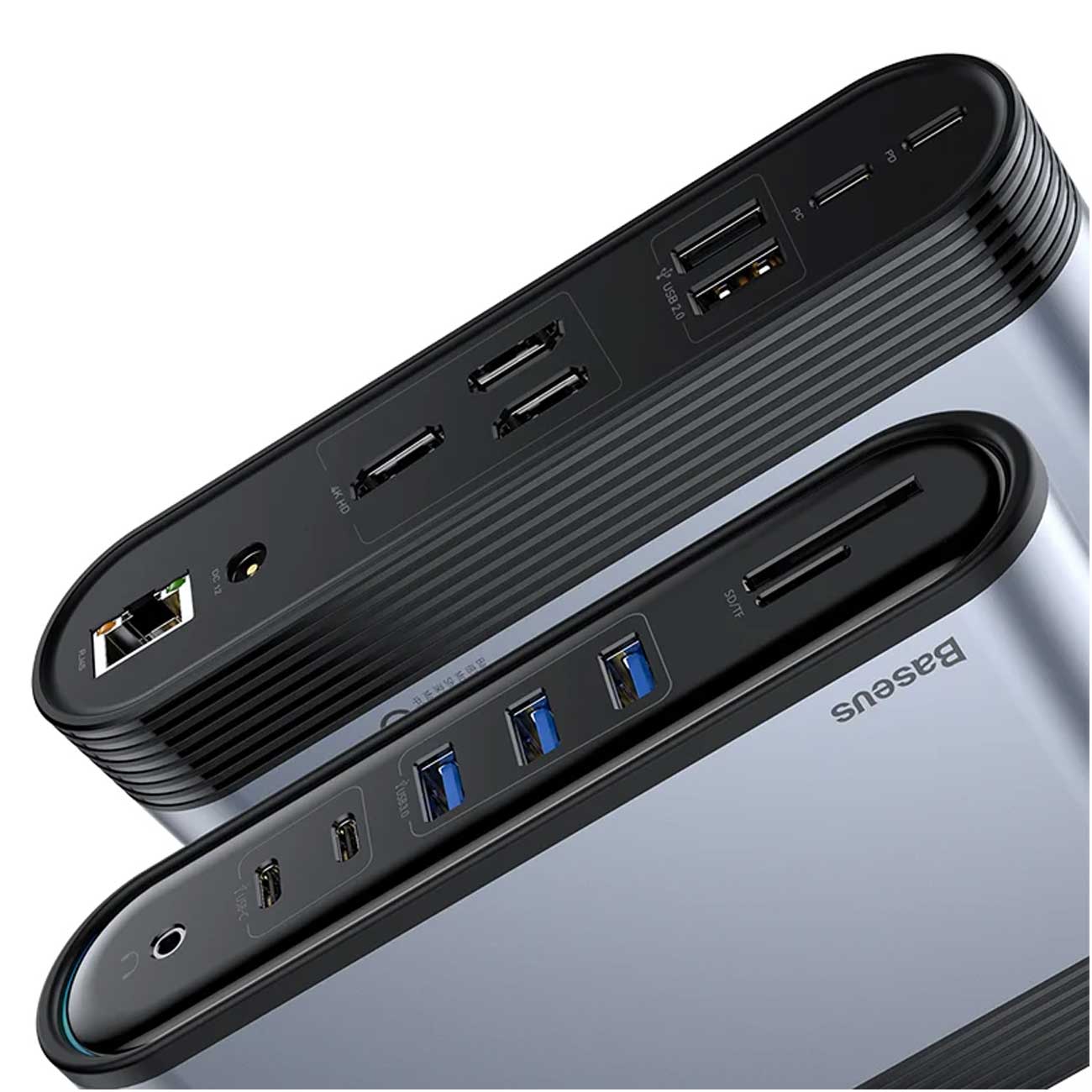 هاب 17 پورت تایپ سی بیسوس مدل CAHUB-DG0G دارای آداپتور و قابل اتصال به برق