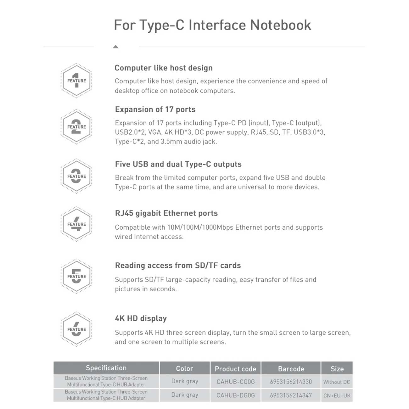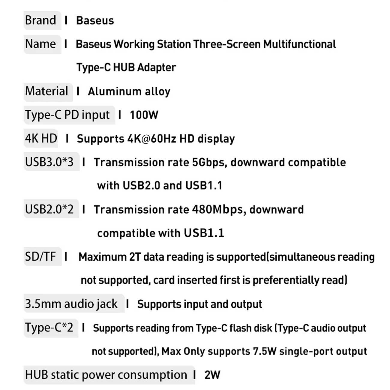 | نام | Baseus Working Station Three-Screen Multifunctional Type-C HUB Adapter |