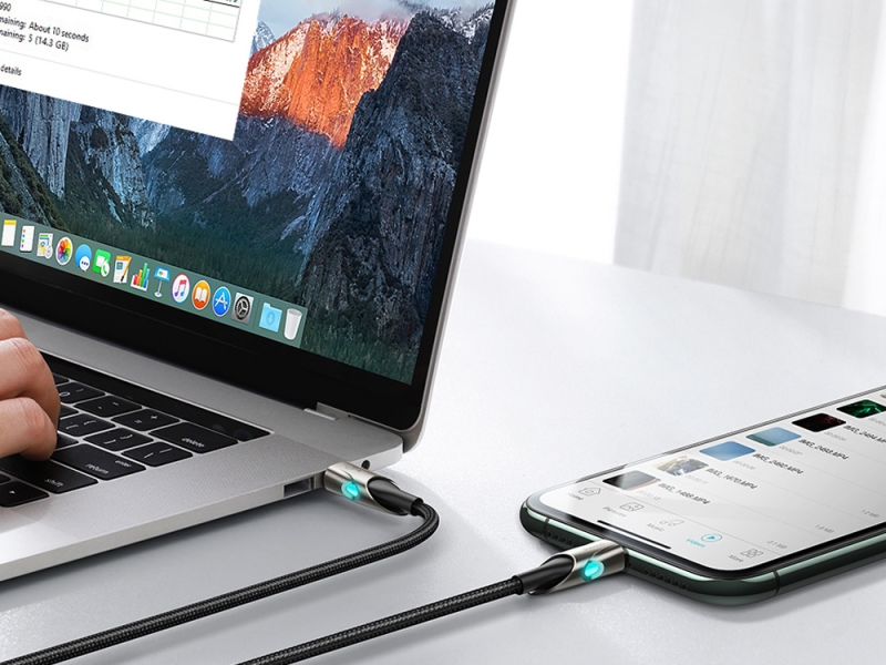 کیفیت بالای کابل شارژ و انتقال داده 1 متری تایپ سی به لایتنینگ بیسوس Baseus Fish Eye علاوه بر جنس، در سرعت انتقال داده نیز قابل مشاهده است. با استفاده از این کابل میتوان با سرعت بالای 480Mbps داده های خود را بین کامپیوتر و گوشی همراه منتقل کرد؛ یعنی انتقال یک گیگابایت فایل در 24 ثانیه!