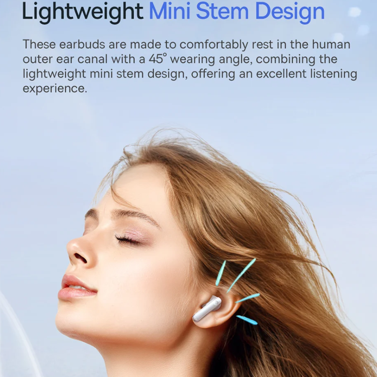 هندزفری وایرلس بیسوس E13 با استفاده از پلاستیک ABS و پلیکربنات نسوز ساخته شده و دارای طراحی مینی استیم سبک است. این ایرفونها به گونهای طراحی شدهاند که به راحتی در کانال گوش خارجی قرار میگیرند و زاویه 45 درجه بهبود یافتهای برای پوشیدن دارند. با ارائه تناسب پایدار و بدون مشکل، تجربه شنیداری برجستهای را فراهم میکنند. طراحی منحنی سهبعدی آنها علاوه بر زیبایی، راحتی بالایی را نیز به شما هدیه میکند.