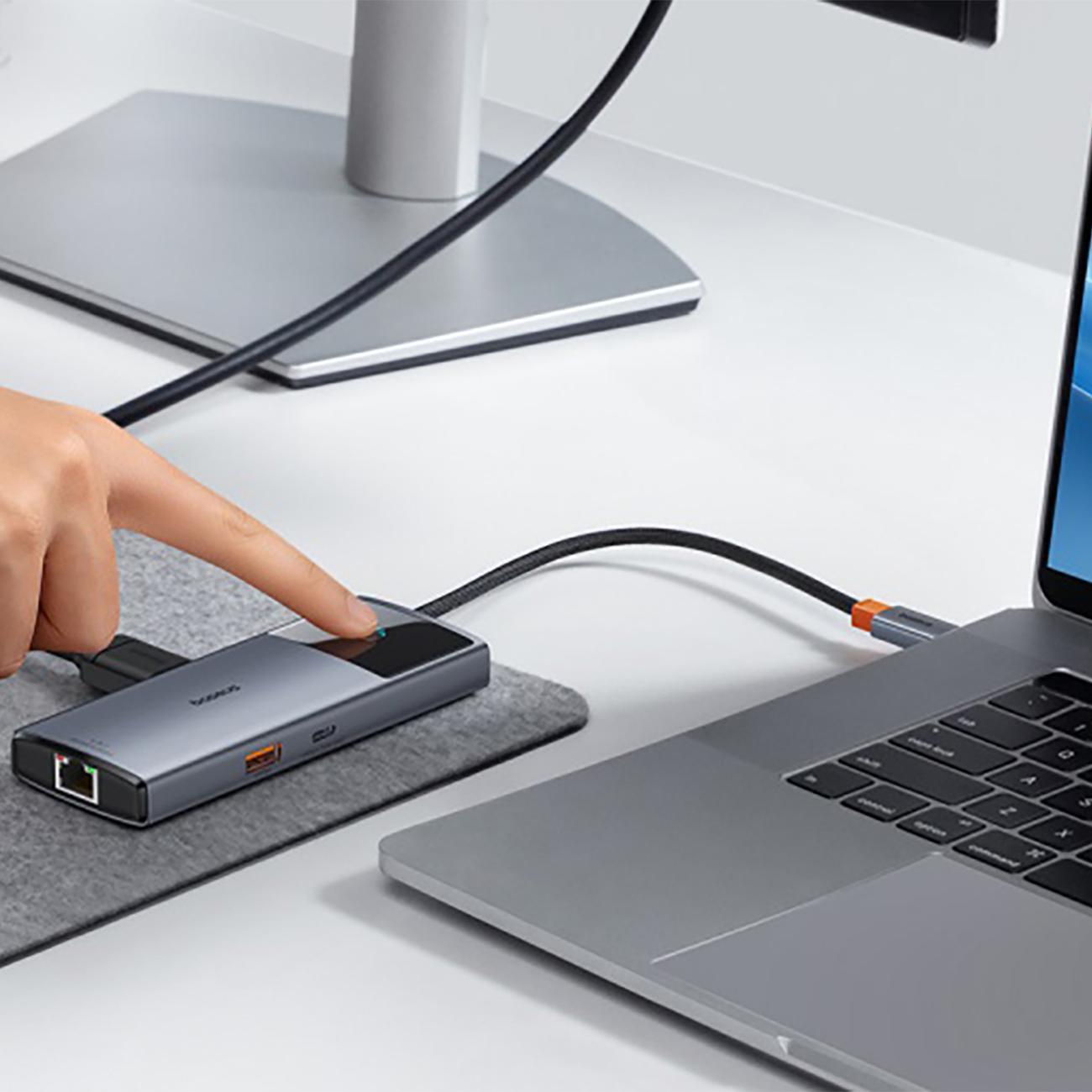 آداپتور مک بوک تایپ سی 6 پورت بیسوس مدل BS-OH099 یک هاب مجهز به عملکرد ریخته گری صفحه است که به آن اجازه میدهد اطلاعات را از یک صفحه به صفحه دیگر منتقل کند. برای ایمنی دادههای شما، دستگاه مجهز به دکمهای است که با فشردن آن، بدون نیاز به جدا کردن هاب، صفحه نمایش را خاموش میکند.
