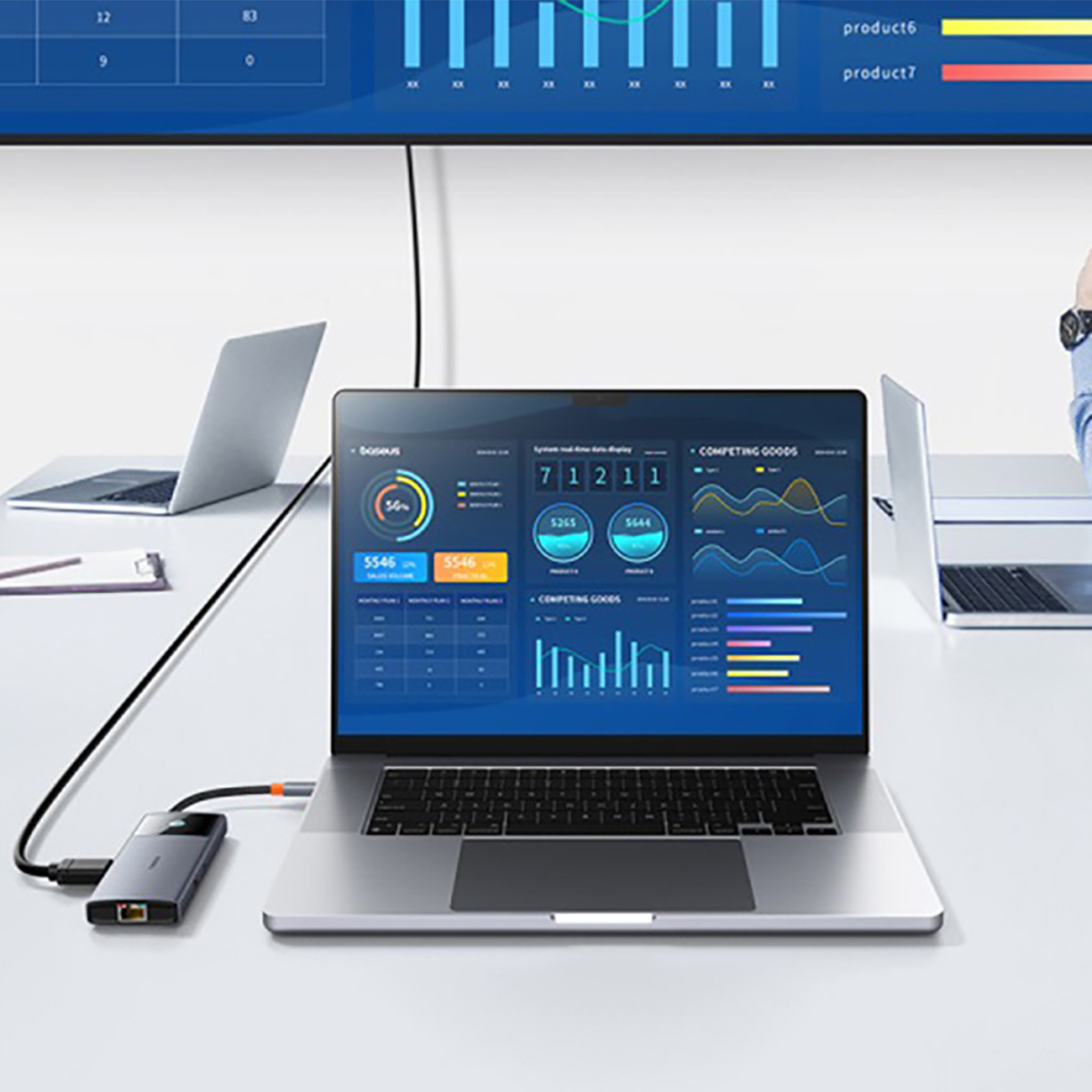 4K@60Hz کیفیتی است که با آن می توانید اسناد یا صفحه نمایش لپ تاپ خود را از طریق درگاه HDMI هاب Baseus Metal Gleam Series II نمایش دهید. تصویر شفاف و رنگهای پر جنب و جوش این اطمینان را میدهد که جزئیات گزارشها و سایر اسناد واضح هستند و ارائه شما به راحتی انجام میشود.