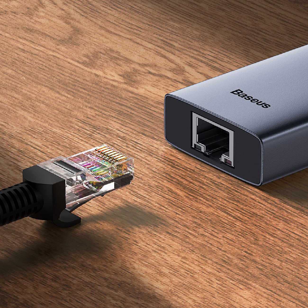 گاهی اوقات برای اتصال به شبکه و اینترنت، استفاده از کابل LAN بهترین راه حل ممکن است. هاب یواسبی چهار پورت برند بیسوس با داشتن درگاه شبکه RJ45 این امر را تسهیل کرده است. این درگاه از سرعت شبکه تا 1000Mbps پشتیبانی کرده و اتصال پایدار به اینترنت و شبکه را تضمین میکند.