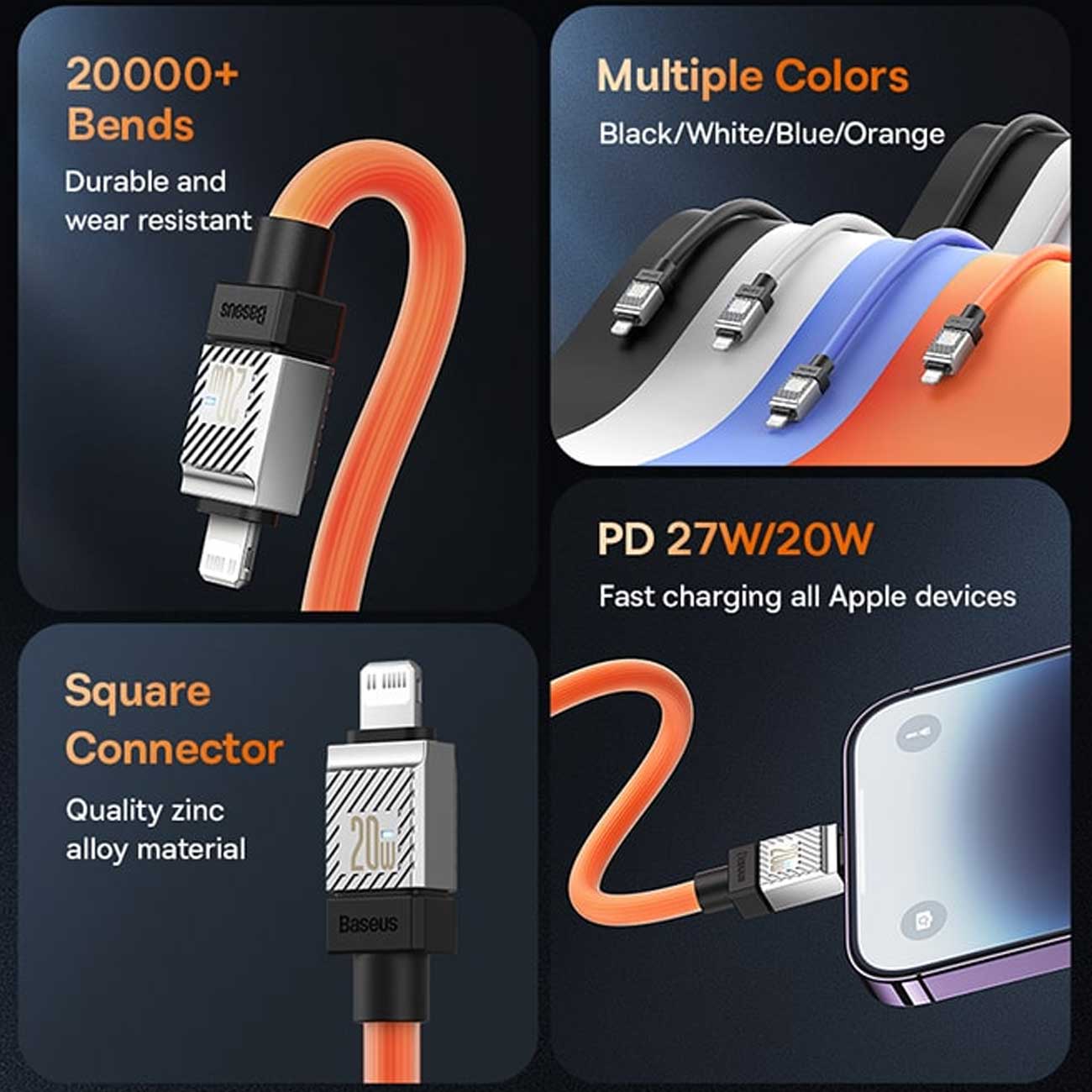 کابل شارژ سریع تایپ سی به لایتنینگ 20 وات 2 متری بیسوس CAKW000101 CB000045