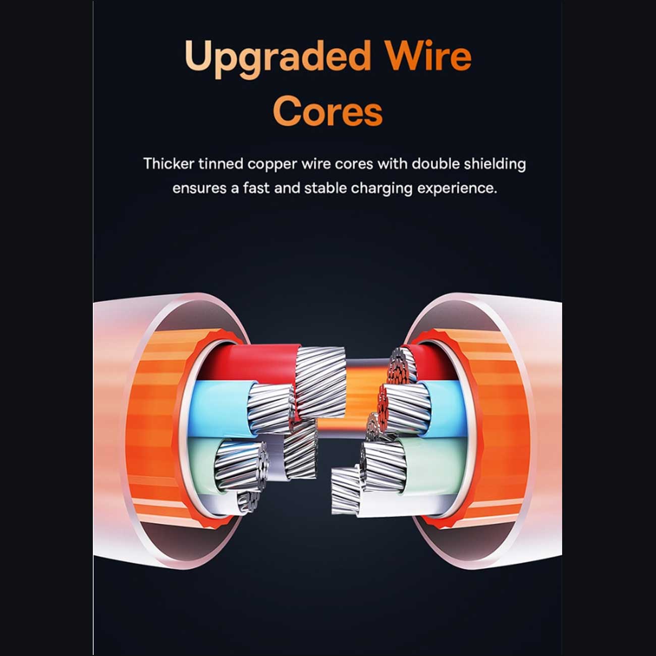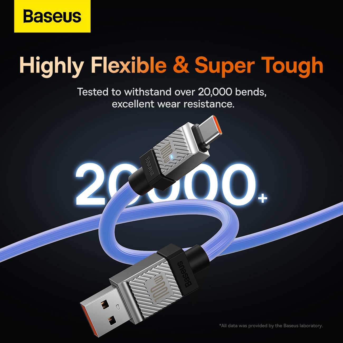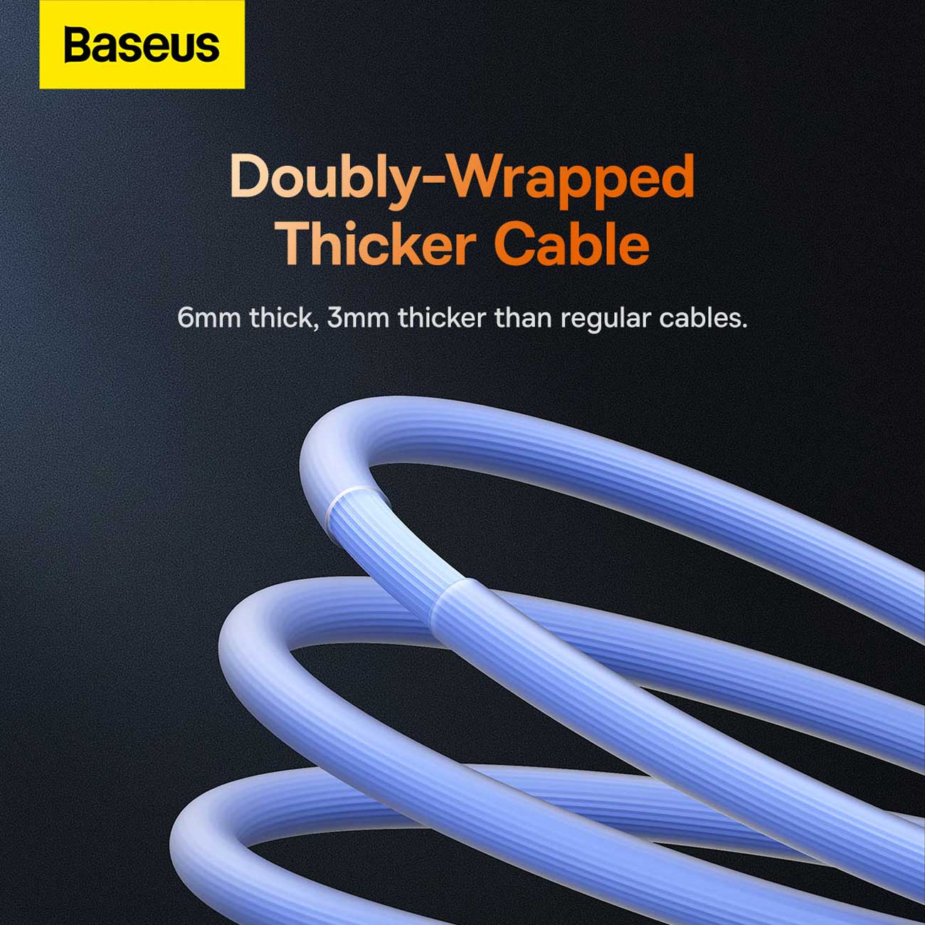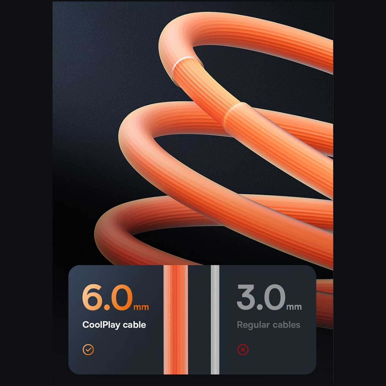 سیم شارژر تایپ سی سری Coolplay برند بیسوس با طول 200 سانتی متر و توان خروجی 100 وات به همراه پشتیبانی از فناوری Power Delivery برای وسایل الکترونیکی کوچکتر و دستگاههای بزرگتر مانند لپ تاپ یا کنسول مناسب است. و میتواند هواوی میت 40 پرو را در کمتر از یک ساعت به طور کامل شارژ کند؛ همچنین وجود هسته قطور چند رشتهای باعث میشود کابل قادر به انتقال داده با سرعت 480 مگابیت بر ثانیه بین کامپیوتر و گوشی باشد.