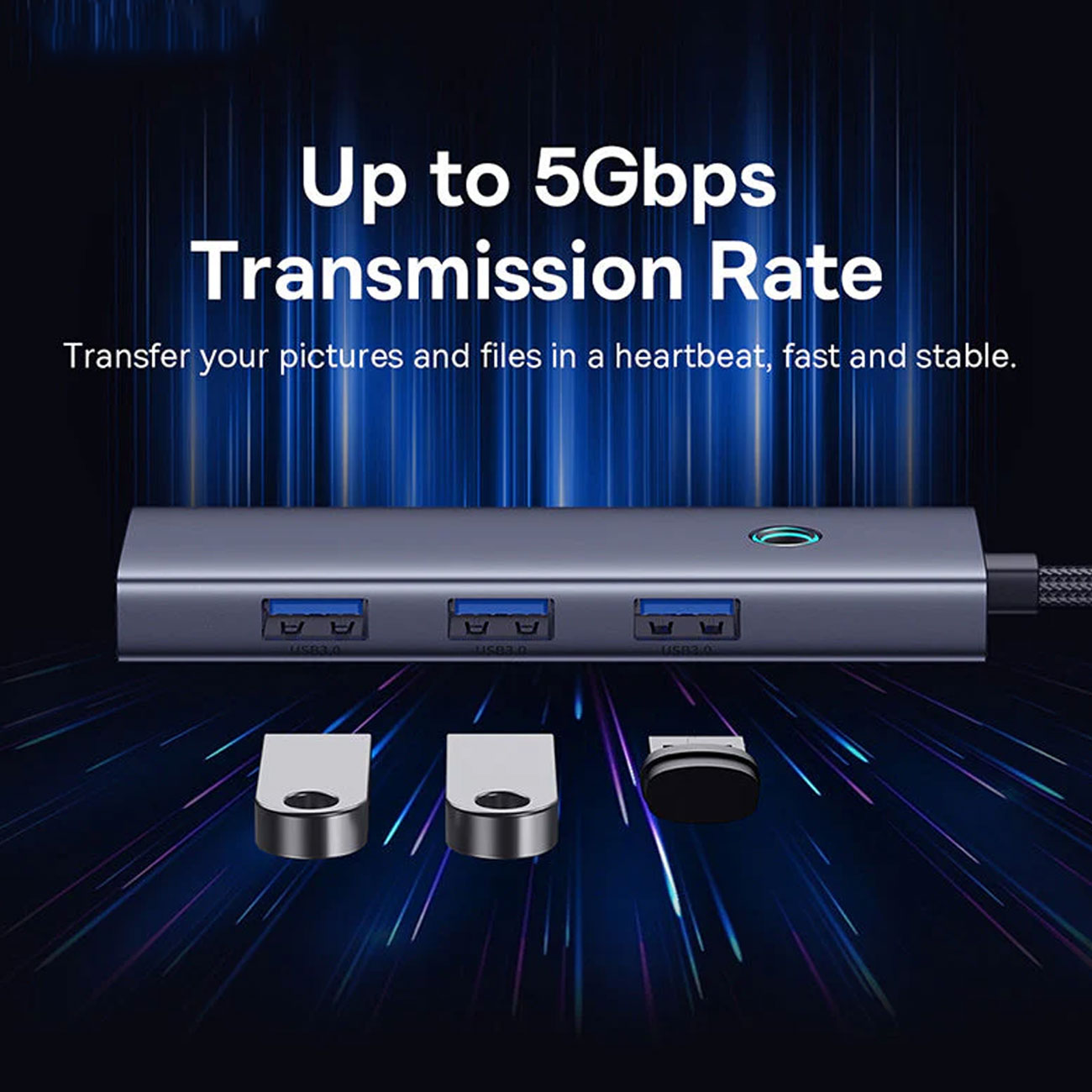 هاب یو اس بی 4 پورت بیسوس علاوه بر شارژ می تواند برای انتقال اطلاعات با سرعت بسیار بالا استفاده شود. این هاب 5 گیگ داده در ثانیه ای جا به جا می کند! بنابراین این هاب برای انتقال سریع عکس و ویدئو بسیار مناسب است.