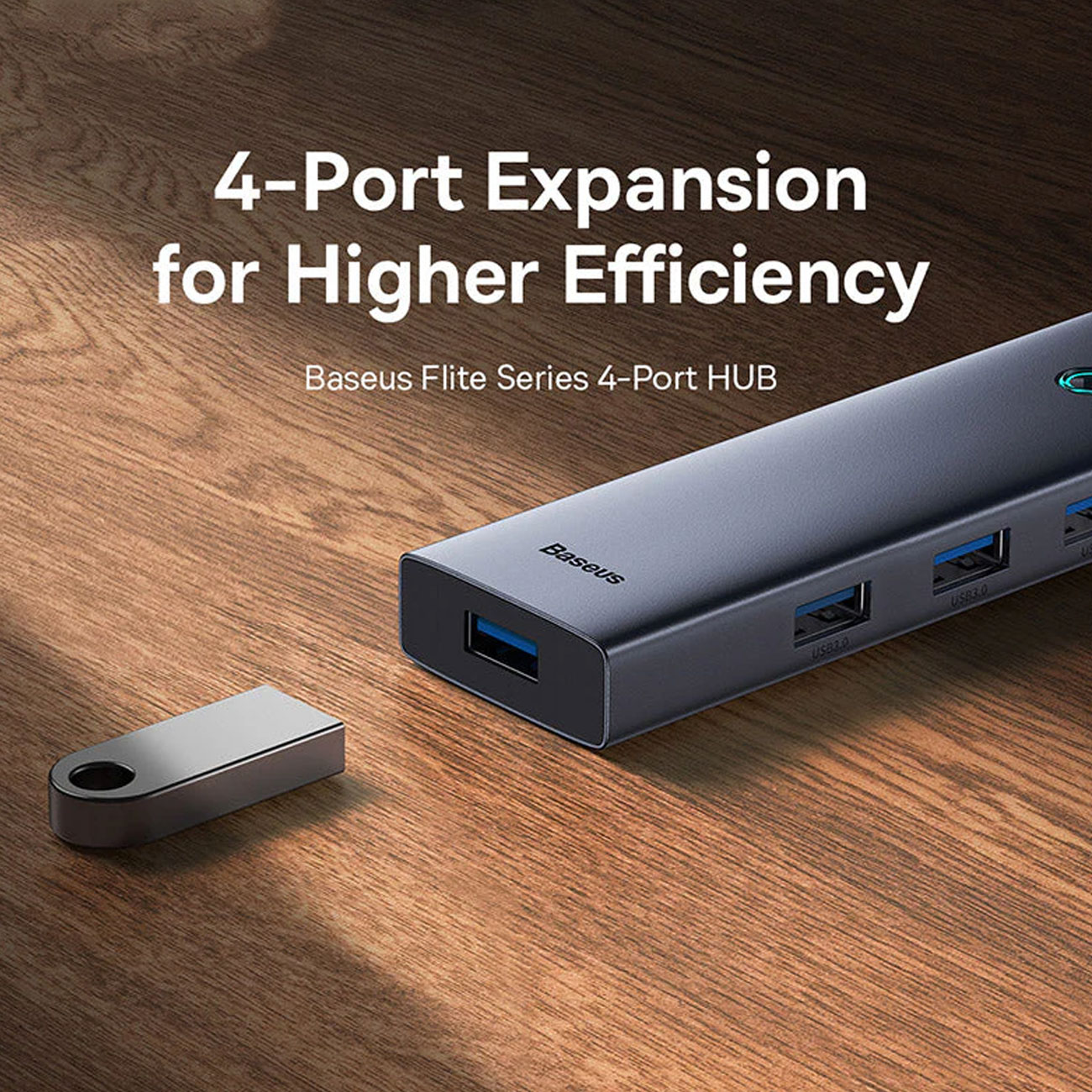 هاب USB بیسوس Flite Series یک هاب با کانکتور ورودی USB-A است که با اشغال تنها یک پورت روی لپ تاپ شما می تواند، 4 پورت خروجی USB3.0 را در اختیارتان قرار دهد. این هاب دارای یک کابل کوتاه است و در کل از حجمی کمی برخوردار است در نتیجه نگهداری و حمل آن نیز آسان است. بدنه ی هاب نیز از آلیاژ آلومینیوم ساخته شده است که در برابر خوردگی و خراش بسیار مقاوم است.