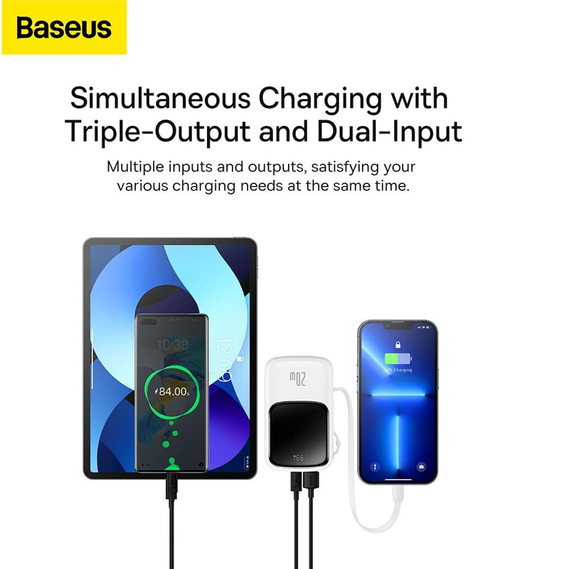 | امکانات و قابلیتها | دارای کابل متصل لایتنینگ 30 سانتی متری نمایشگر دیجیتال LED دارای بند حمل یکپارچه شده با کابل چیپ حفاظتی هوشمند BPS قابلیت حمل آسان مناسب برای سفر قابلیت ری شارژ با توان 18 وات |