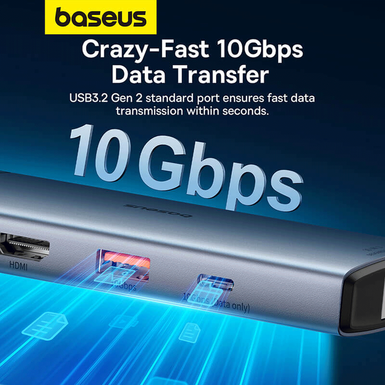 هاب تایپ سی بیسوس از آلیاژ آلومینیوم که در برابر ضربه و آسیب بسیار مقاوم می باشد، ساخته شده. وزنی معادل 115 گرم و ابعاد 47*12*140 میلی متر دارد. جمعوجور بوده و حمل آن آسان است. دارای 10 کانکتور 1xHDMI, USB-A (10Gbps), USC-C, 2xUSB-A, Ethernet RJ45, SD/TF card, 3.5mm mini-jack, USB-C(PD) است و قابل اجرا در لپ تاپ و نوتبوکهای اصلی Type-C، تلفنهای همراه، تبلت و ... خواهد بود.