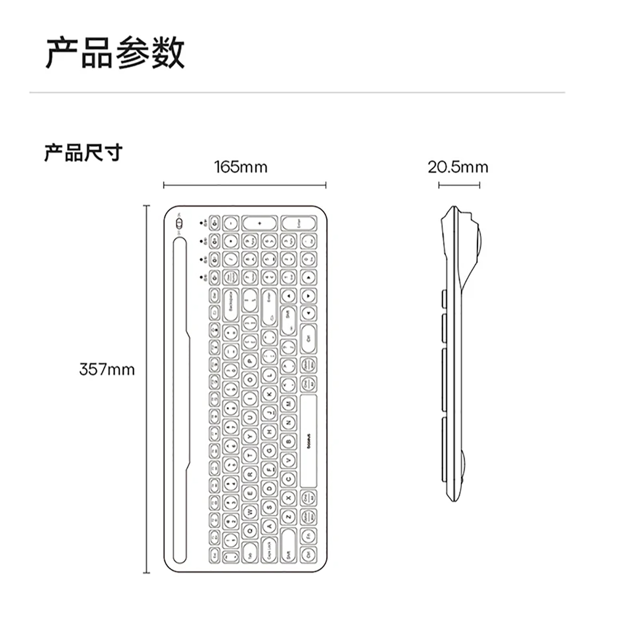 دکمههای کیبورد Baseus K03 با مواد مات ساخته شده اند که میتوانند به طور موثری مشکلاتی مانند درخشش و چربی ناشی از استفاده طولانی از آن را کاهش دهد و بعد از استفاده زیاد همچنان کیبورد نو به نظر برسد. کلیدها در قطر 1.5 میلیمتری و با ساختار قیچی ساخته شدهاند که فشار دادن راحت و سریع و تایپ با سرعت بالا را ممکن میسازد.