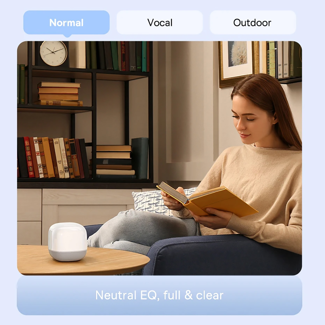 اسپیکر بی سیم قابل حمل بیسوس مدل AeQur V2 با سه نوع اکوالایز، استفاده از آن را در محیطهای مختلف مناسب کرده است. اکوالایزر معمولی برای محیطهای داخلی، اکوالایزر مخصوص آواز خواندن و اکوالایزر مخصوص محیطهای خارجی و فضای باز نیازهای شما را برآورده میسازد. کدک پردازش موسیقی AAC و SBC است.