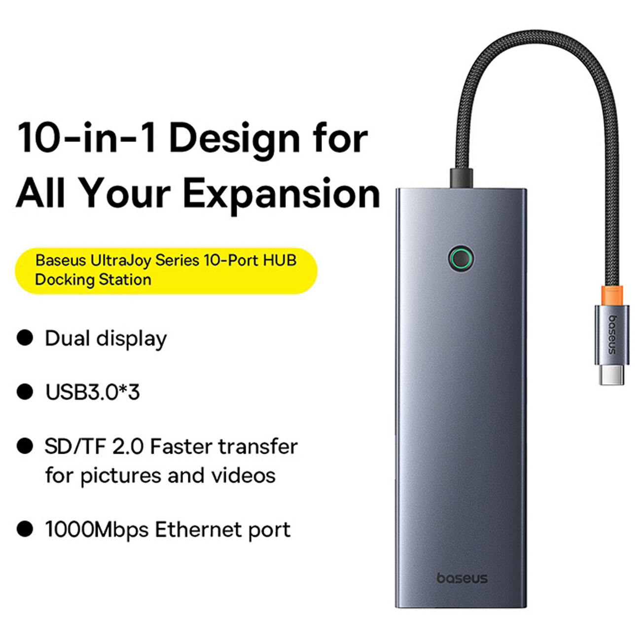 هاب Baseus UltraJoy با ویژگیهای امنیتی پیشرفته خود دستگاههای شما را ایمن نگه میدارد. این به طور موثر آنها را در برابر اضافه ولتاژ، جریان اضافه و اتصال کوتاه محافظت میکند. علاوه بر این، خطر تداخل و گرمای بیش از حد را کاهش میدهد. یک نشانگر نور وضعیت عملکرد را به شما اطلاع میدهد و یک نوار از کابل در برابر آسیب محافظت میکند.