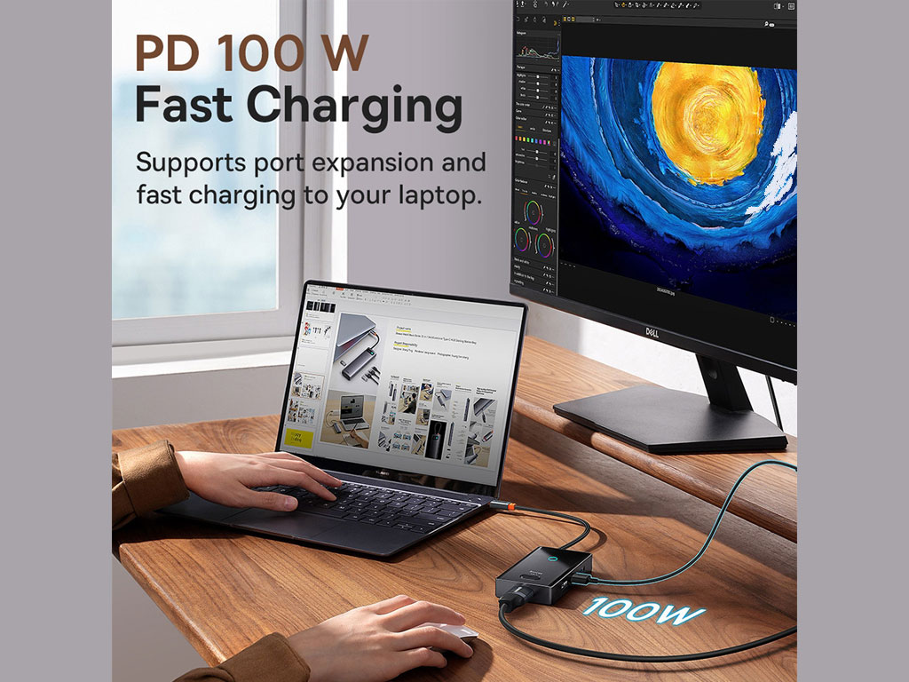 یک پورت Type-C PD: که با وجود این پورت امکان شارژ با قابلیت PD را در اختیار دارید و حداکثر توان آن 100 وات است و قابلیت شارژ سریع انواع نوت بوک و لپتاپهای 100 واتی را برایتان مهیا کرده است.