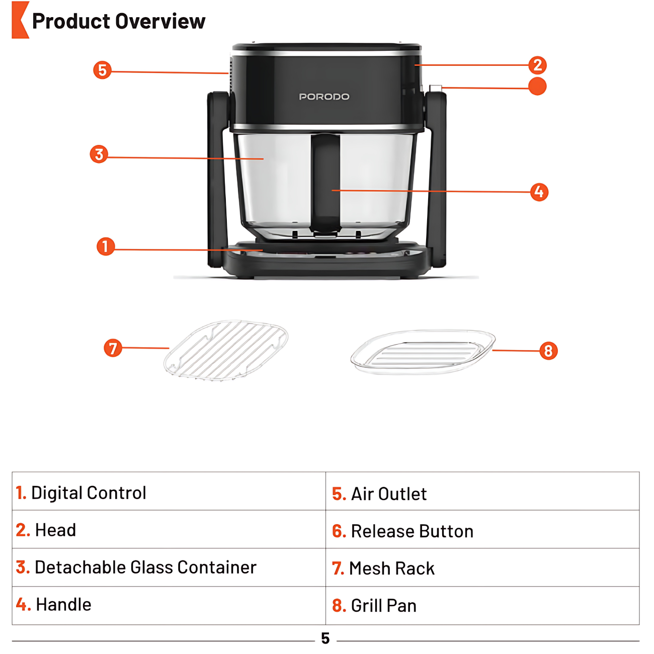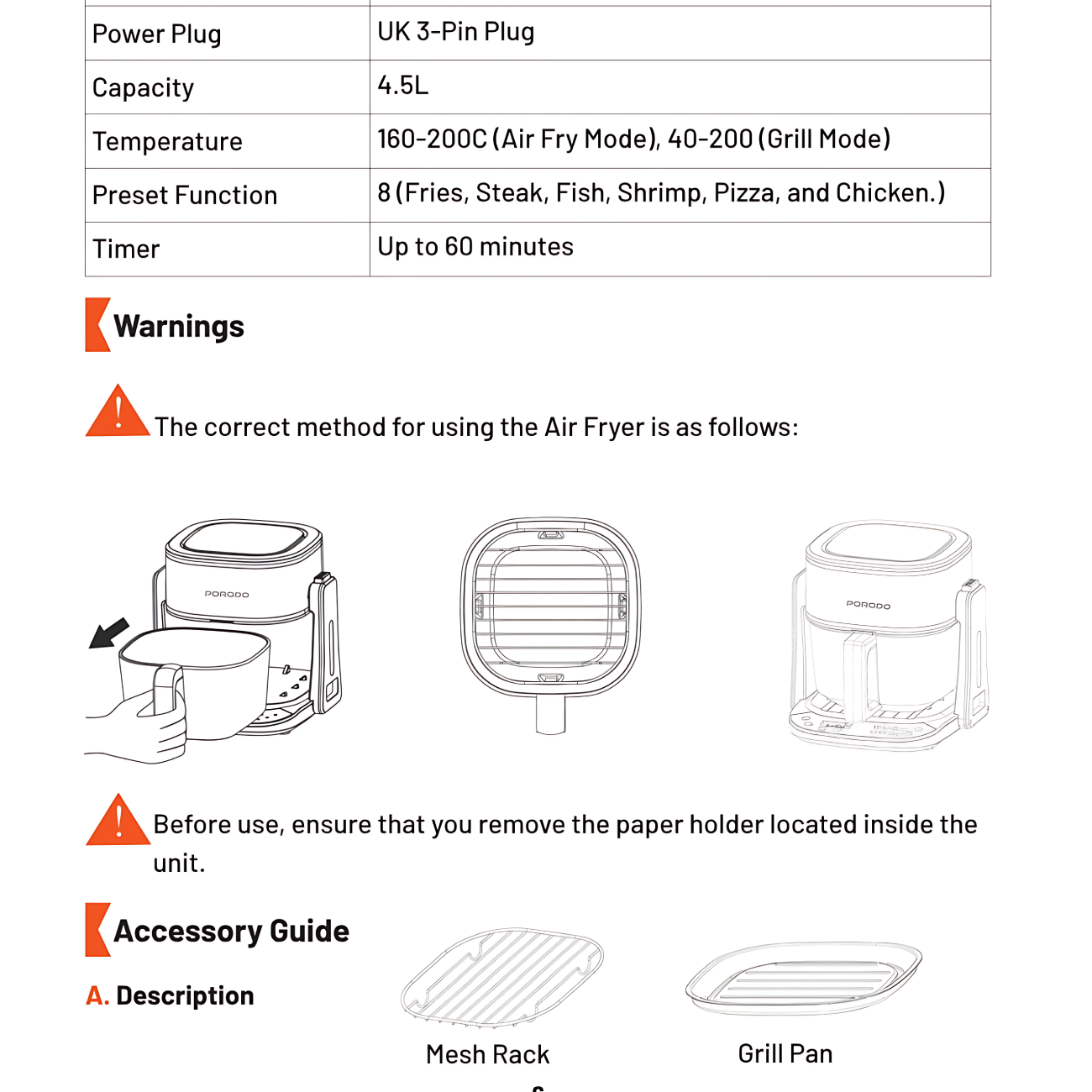 هواپز و گریل دوکاره پورودو مدل Dual Design Air Fryer & Grill با ظرفیت 4.5 لیتر