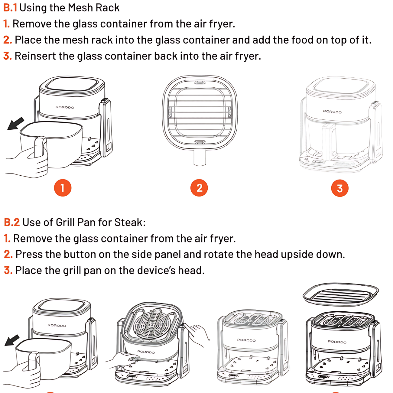 مزایای سرخ کن و هواپز و گریل پرودو PD-LFST022-BK