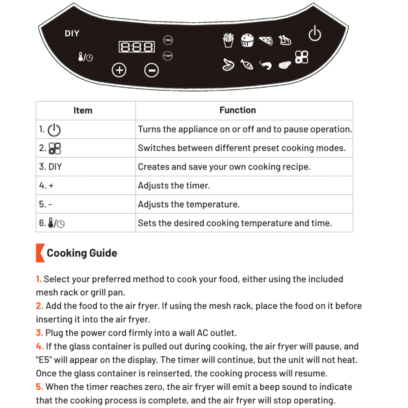 - حالتهای پخت از پیش تنظیمشده: 8 عدد (سیبزمینی سرخکرده، استیک، ماهی، میگو، پیتزا، مرغ)