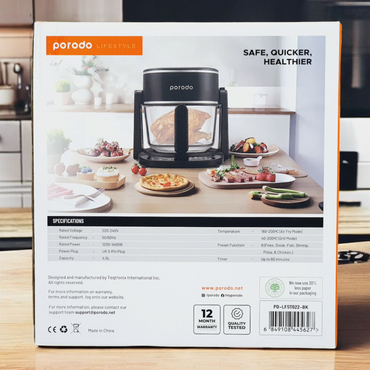 به لطف فناوری پیشرفته بهکاررفته در سرخ کن و گریل Porodo PD-LFST022-BK، غذاها بهطور یکنواخت و کاملاً ترد پخته میشوند. چه در حالت گریل و چه در حالت سرخکن، این دستگاه همیشه نتایج عالی ارائه میدهد.