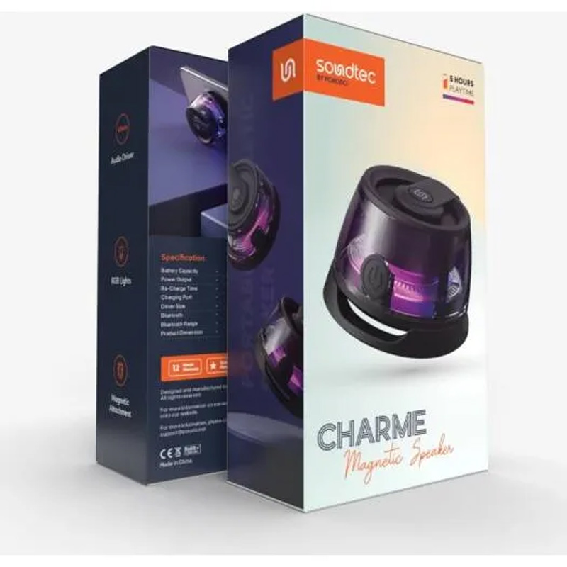 اگر به دنبال یک اسپیکر بلوتوثی کوچک و قدرتمند هستید که علاوه بر کیفیت صدای عالی، ویژگیهای خاصی مانند اتصال مغناطیسی و نورپردازی RGB را ارائه دهد، اسپیکر Porodo Soundtec Charme Magnetic Attachment Speaker انتخابی ایدهآل برای شماست. این اسپیکر با طراحی جمع و جور، قدرت صدای عالی و امکانات جذاب، تجربهای بینظیر از شنیدن موسیقی را برای شما به ارمغان میآورد.