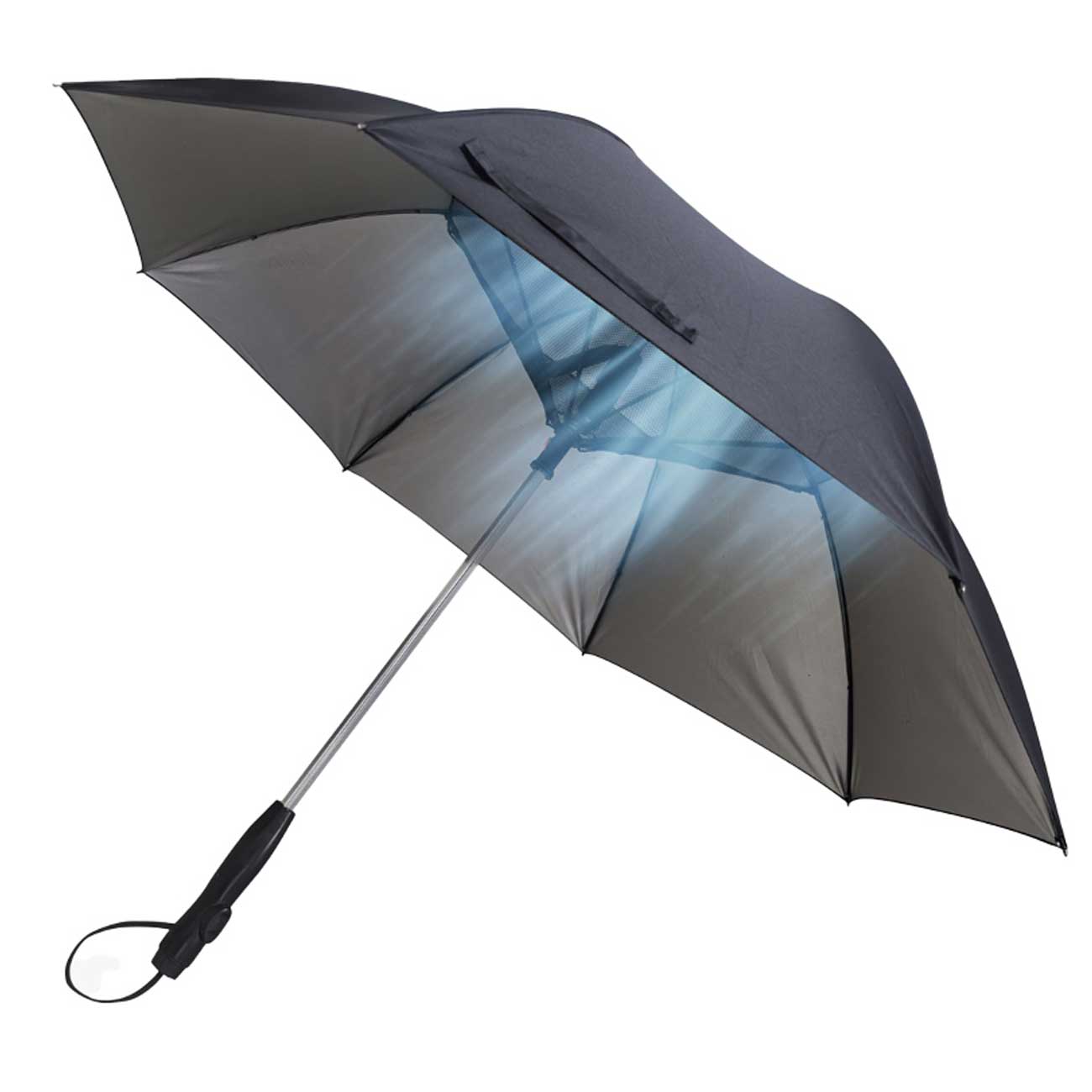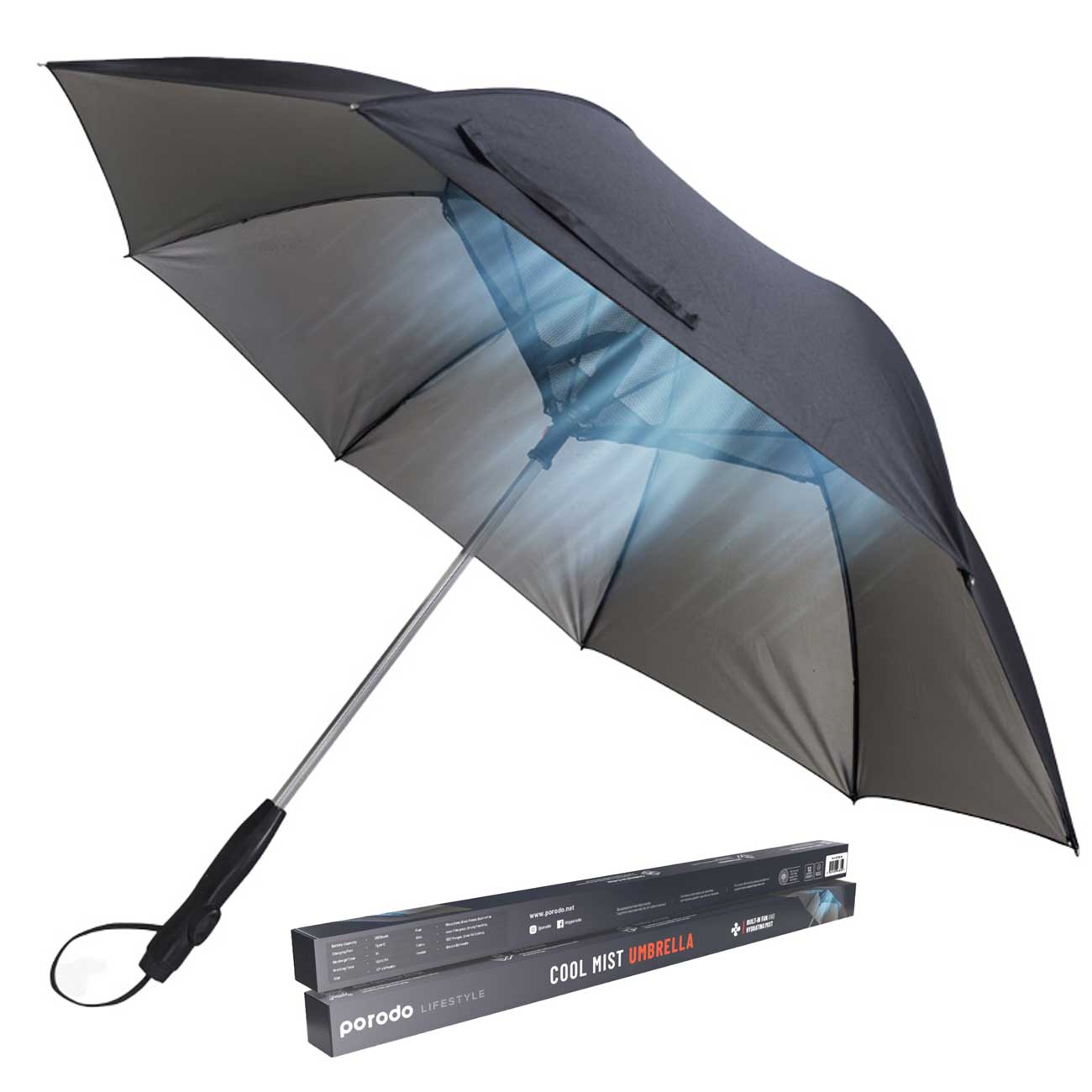 چتر Porodo Lifestyle به یک فن داخلی و مه پاش مرطوبکننده مجهز است که به طور مؤثر دمای بدن شما را پایین میآورد و احساس خنکی و راحتی در دمای بالا ایجاد میکند. فن داخلی این چتر جریان هوای خنک را به شما هدیه میدهد و مه مرطوبکننده به ایجاد هوای تازه و دلپذیر کمک میکند.