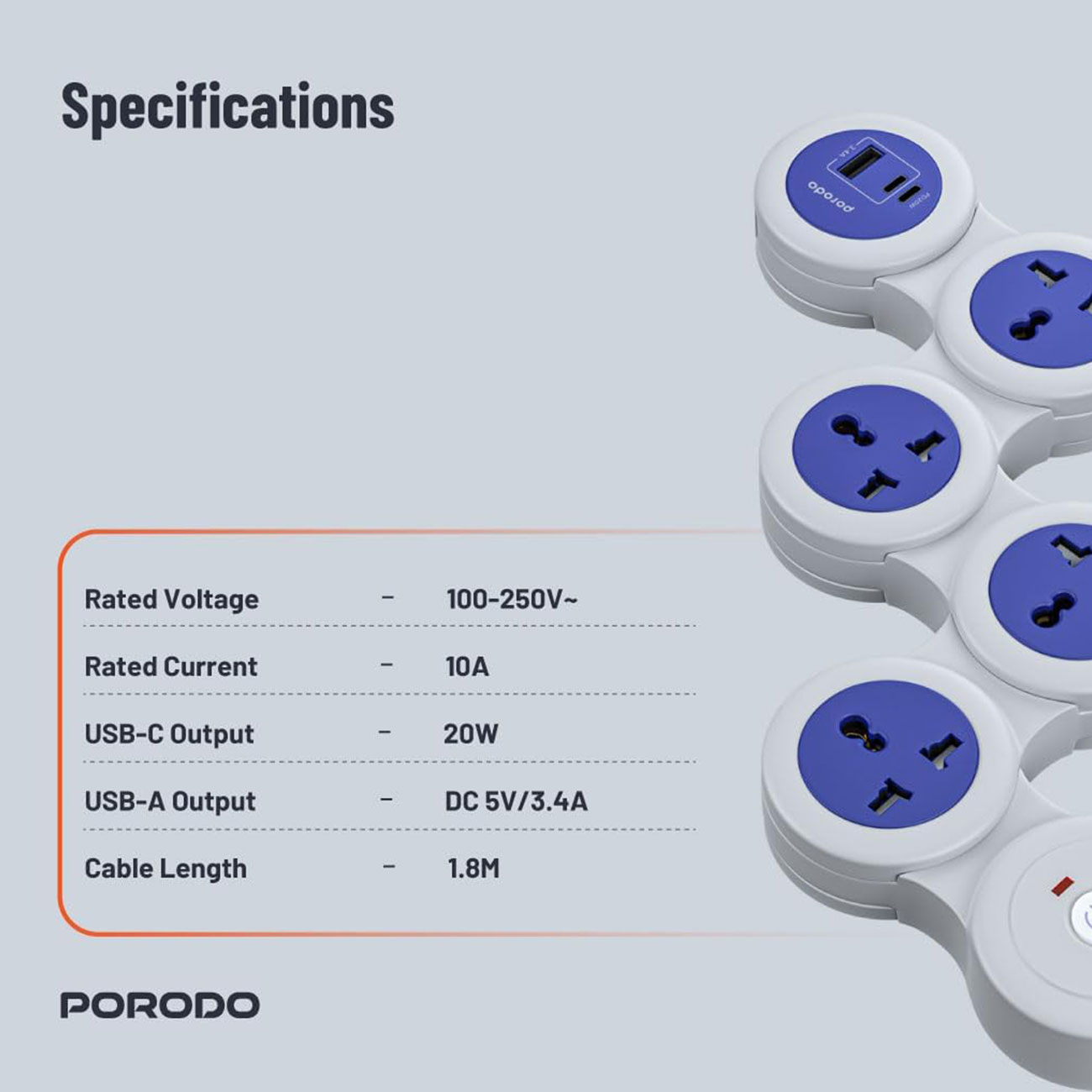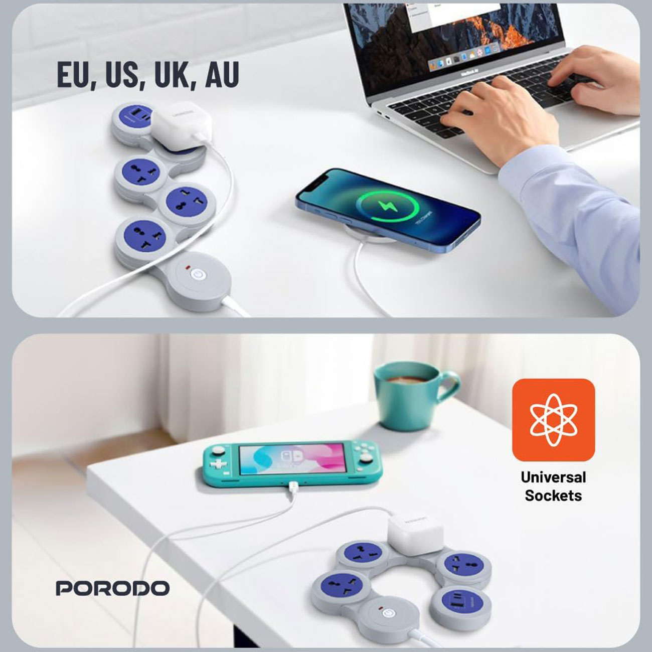 همانطور که اشاره کردیم چندراهی برند پورودو دارای 4 عدد سوکت برق است. این 4 سوکت با دو شاخه های برق اتحادیه اروپا، بریتانیا، ایالات متحده و AU سازگار است و این ویژگی آن را به یک محصول بین المللی تبدیل کرده است.
