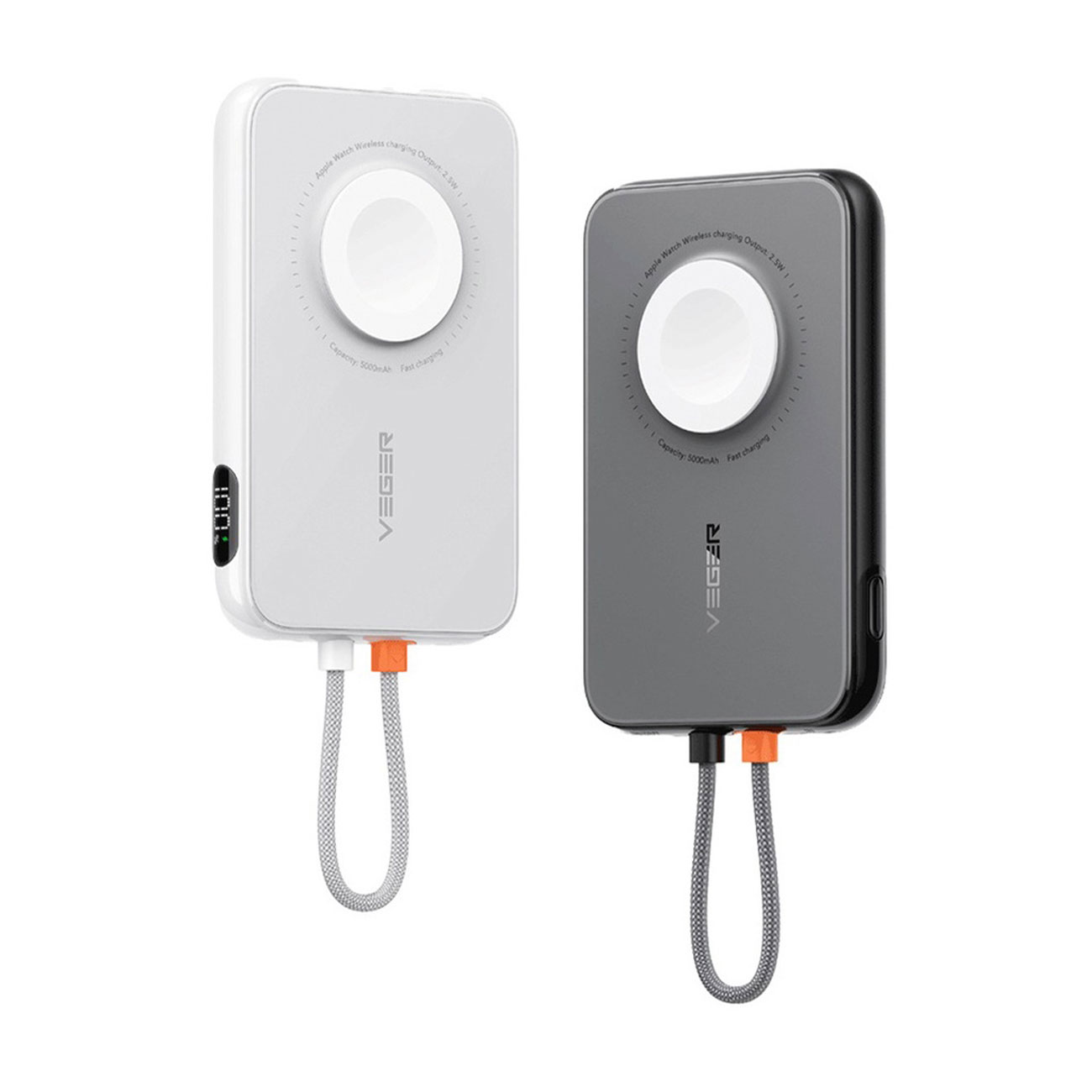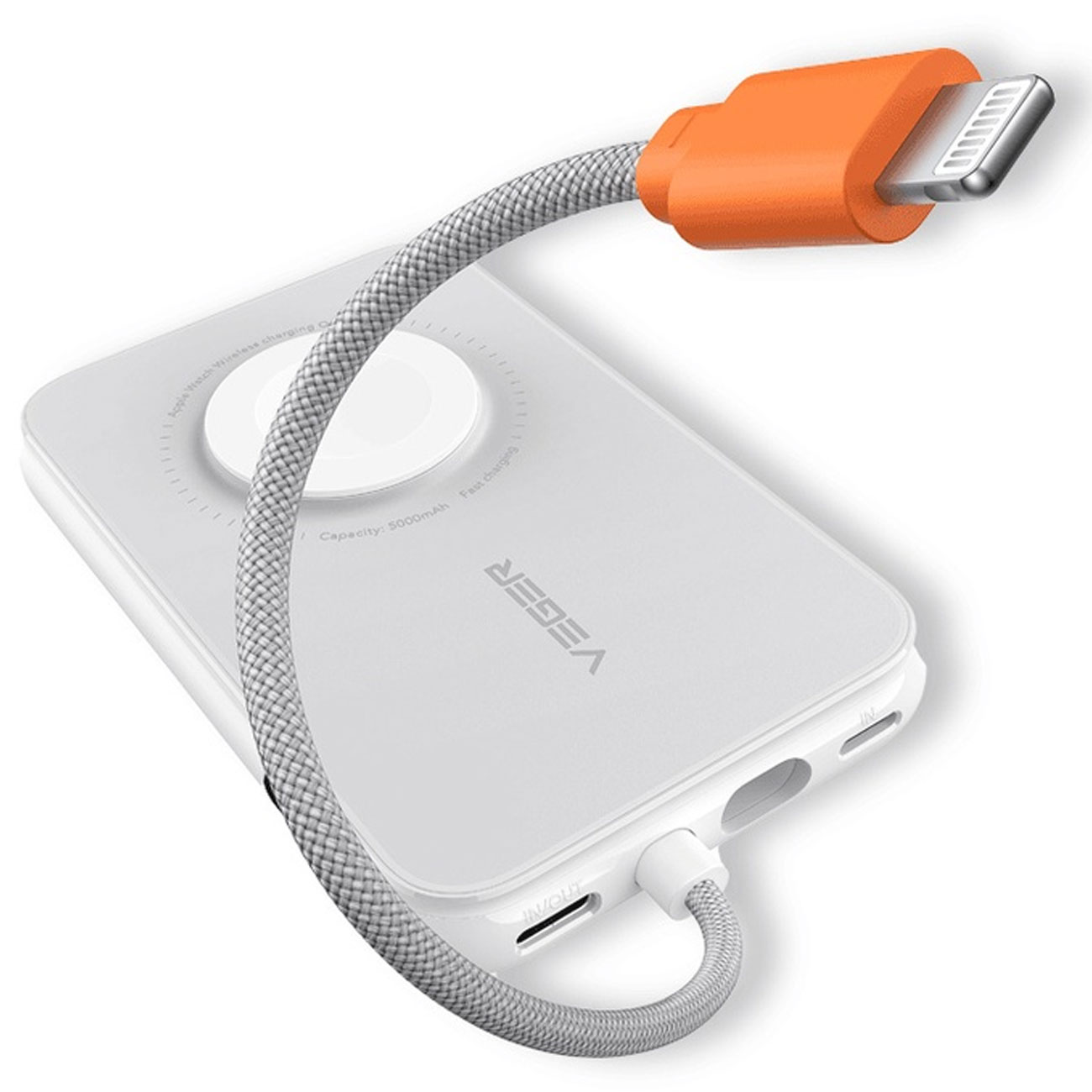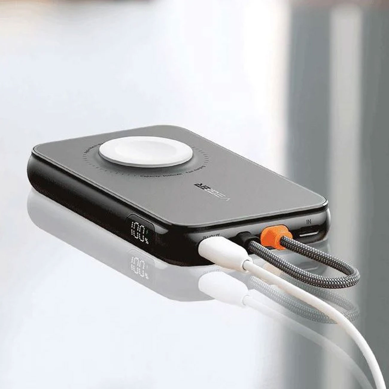 PD-PBFCH027 دارای کابل شارژ لایتنینگ است که به بدنه آن متصل شده و از توان 20 وات پشتیبانی میکند و توان این را دارد که گوشی شما را تا 60 درصد در 30 دقیقه شارژ نماید. بخشی از آن به صورت مگنتی طراحی شده که مناسب شارژ اپل واچ خواهد بود. توان شارژر اپل واچ وایرلس 2.5 وات است.