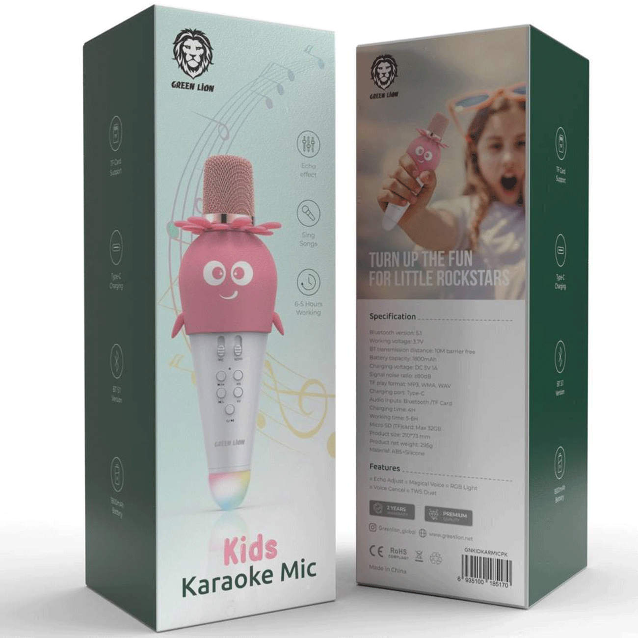 میکروفون بدون سیم Green Lion GNKIDKARMICPK با جنس ABS و سیلیکون، ترکیبی از مقاومت و نرمش را برای استفاده ایمن فراهم میکند. با اندازه 210*73 میلیمتر و وزن خالص 295 گرم، این میکروفون بهراحتی در دستان کوچک کودکان جا میشود. طراحی رنگی آن در دو رنگ آبی و صورتی، جذابیت بیشتری برای کودکان ایجاد کرده و تجربهای شاد و سرگرمکننده از استفاده میکروفون فراهم میآورد.