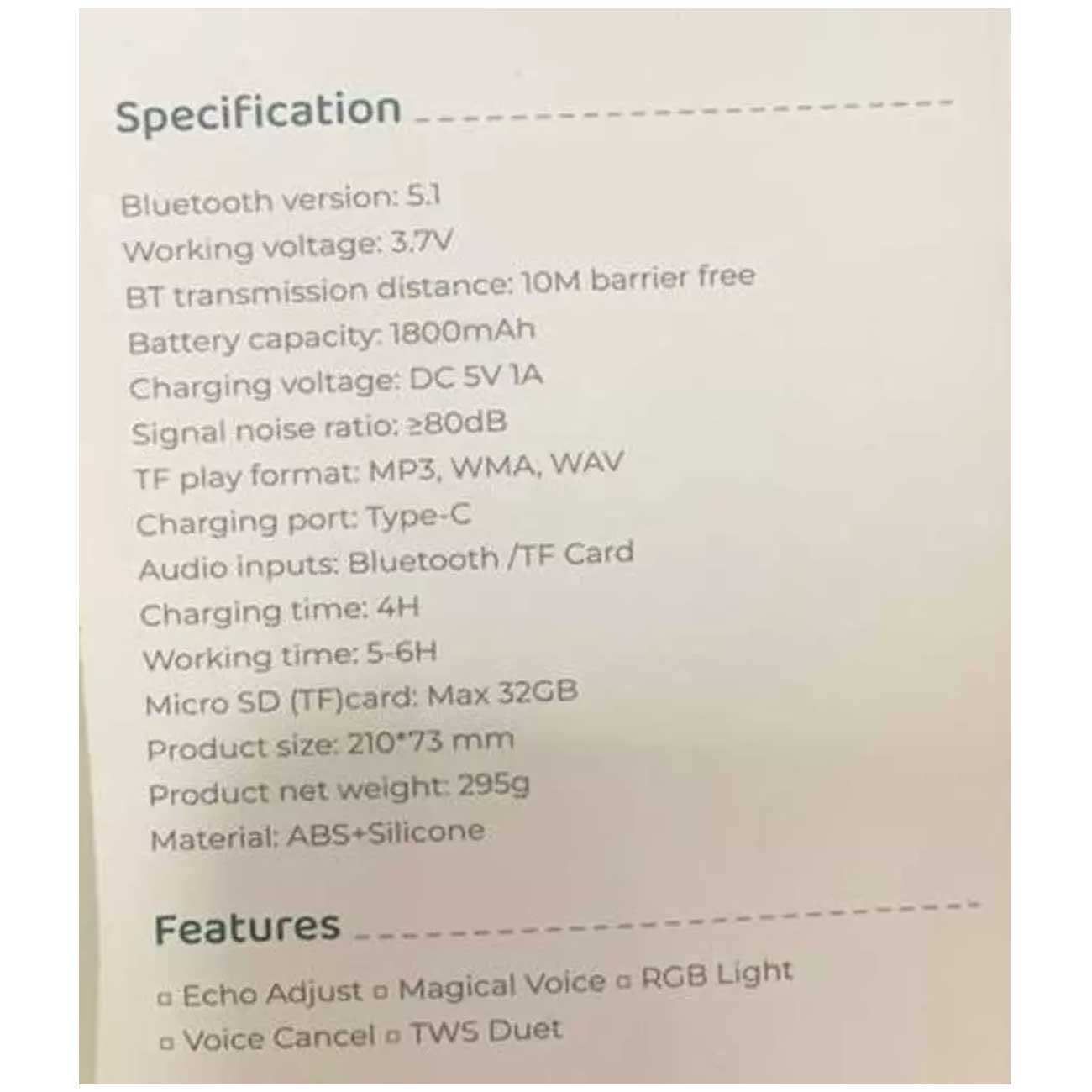 میکروفون گرین GNKIDKARMICPK با ظرفیت باتری 1800 میلیآمپر ساعت امکان استفاده مداوم برای آوازخوانی به مدت 5 تا 6 ساعت را فراهم میکند. همچنین، رابط شارژ تایپ سی و ورودی شارژ DC5V-1A آن به شما این امکان را میدهد که به راحتی و به سرعت میکروفون را شارژ کنید. این ویژگیها باعث میشوند که میکروفون همیشه آماده استفاده باشد و به شما اجازه میدهند تا بدون نگرانی از قطع شدن شارژ، از آن برای جلسات طولانیتر کارائوکه یا اجراهای زنده استفاده کنید.