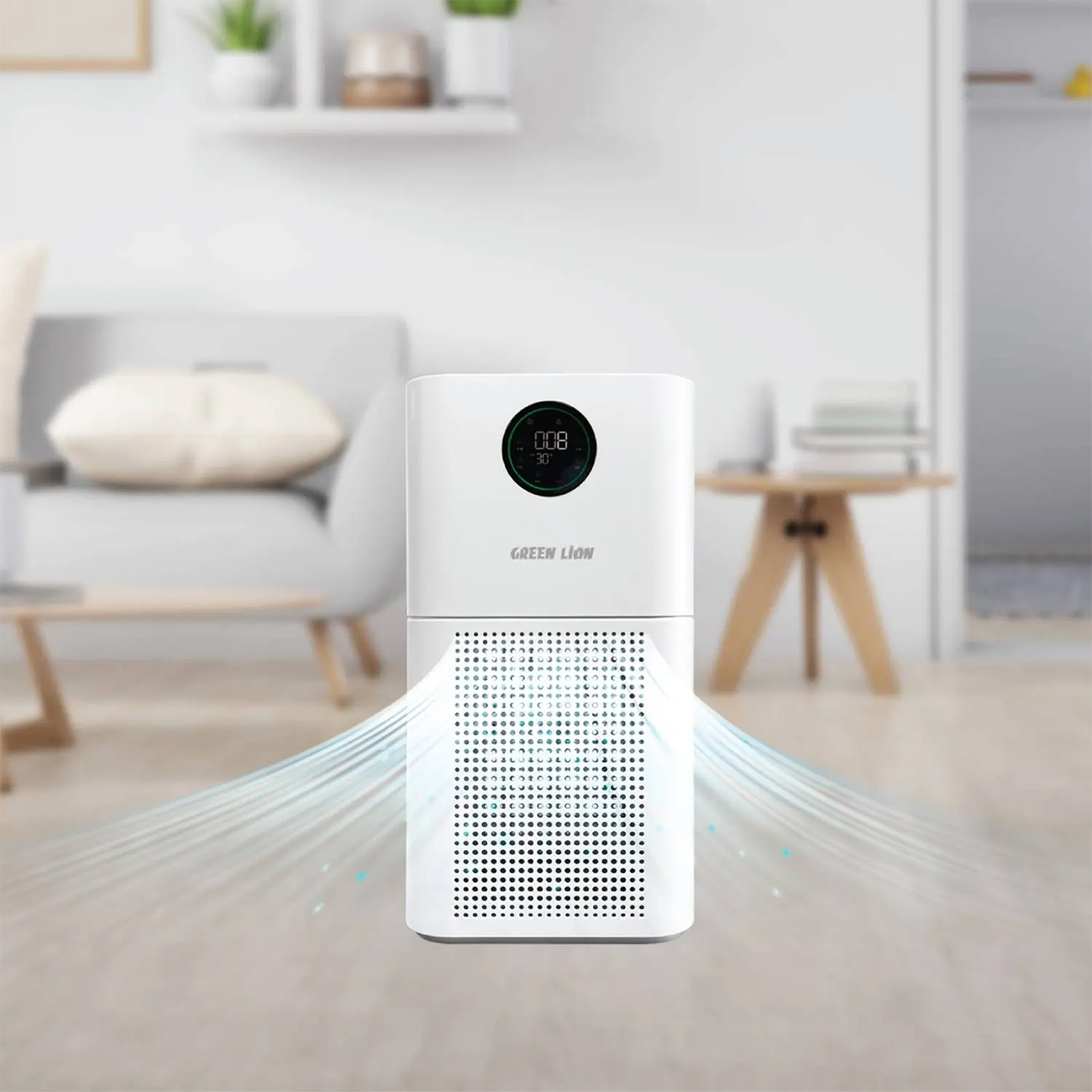 تهویه هوای هوشمند گرین Green Lion Intelligent Air Purifier علاوه بر اینکه آلایندههای موجود در هوا، مانند پرز فرش، بوی غذا، پرهای ریز پرندگان خانگی، بوی رنگ، دود سیگار و گرد و خاک را از بین میبرد، موجب کاهش علائم آسم نیز میگردد. تحقیقات نشان داده که دستگاه تصفیه هوای هوشمند گرین با فراهم کردن هوای تازه، سطح خلقی افراد را نیز بهبود میبخشد.