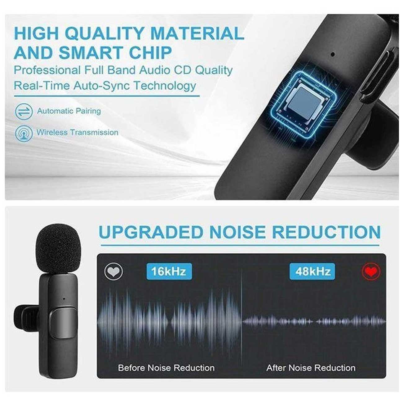 این یک میکروفون کوچک و گیره دار است که صدا را به صورت بی سیم به گیرنده ای که به دستگاه شما وصل می شود منتقل می کند. این باعث آزادی حرکت می شود و از به هم ریختگی کابل ها جلوگیر می کند.