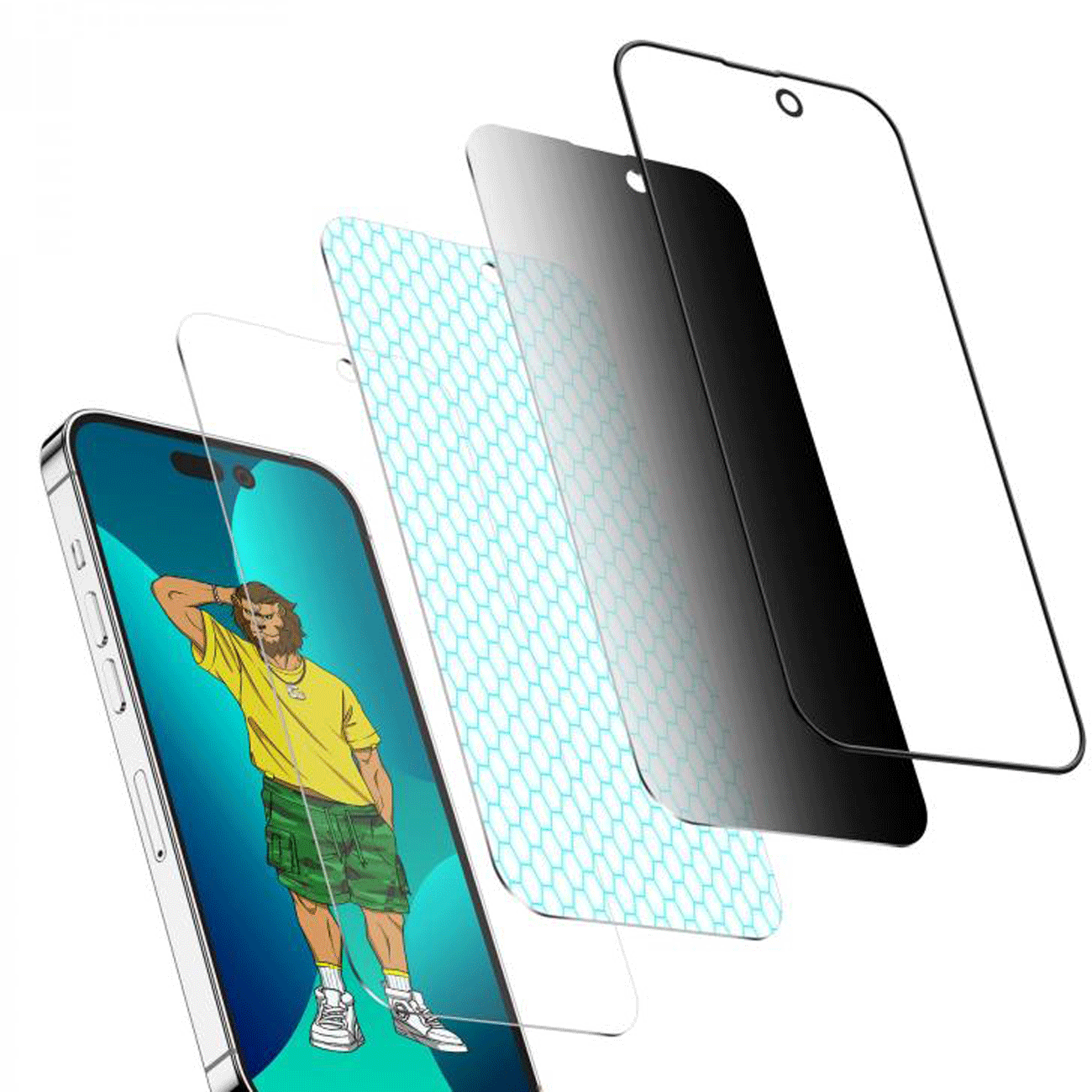 گلس حریم شخصی آیفون 14، 13 و 13 پرو سه بعدی گرین GN3DSPY14