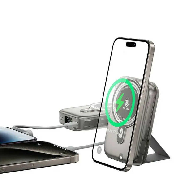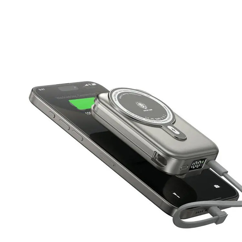 | قابلیتهای ویژه | دارای نمایشگر دیجیتال برای نشان دادن وضعیت باتری,مجهز به فناوری شارژ سریع PD، پشتیبانی از MagSafe,تبدیل شدن به هولدر موبایل رومیزی,سیستم حفاظت چندگانه,کابل تایپ سی متصل به بدنه |