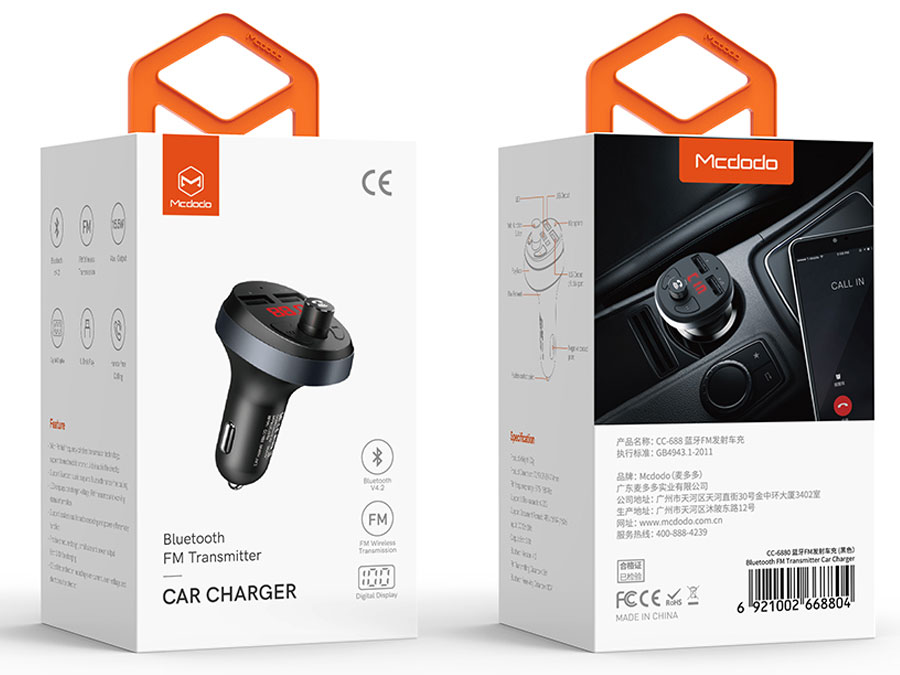نام این شارژر فندکی یو اس بی با قابلیت پخش موسیقی و تماس مک دودو Mcdodo Car Charger Blutooth FM Transmitter CC-688 است و در ادامه با شرح جزئیات آن میپردازیم.