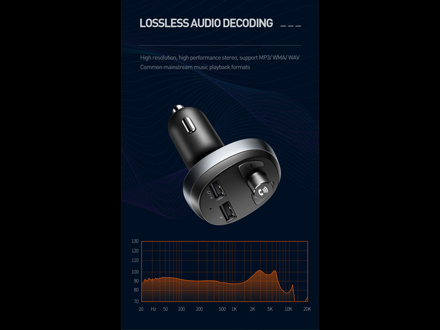 شارژر فندکی و اف ام پلیر خودرو از قابلیت ویژهای برای ارسال فایلهای صوتی بهصورت امواج رادیویی برخوردار است؛ درنتیجه میتواند مثل یک رابط بین گوشی موبایل و ضبط خودرو عمل کند. برای این کار کافیست تا شارژر را از طریق بلوتوث نسخه 4.2 به تلفن همراه و از طریق طول موجی یکسان به ضبط معمولی ماشین خود متصل کنید. بعد یکی از آهنگهای موردعلاقهتان را انتخاب کنید تا شاهد پخش آن از ضبط خودرو باشید!