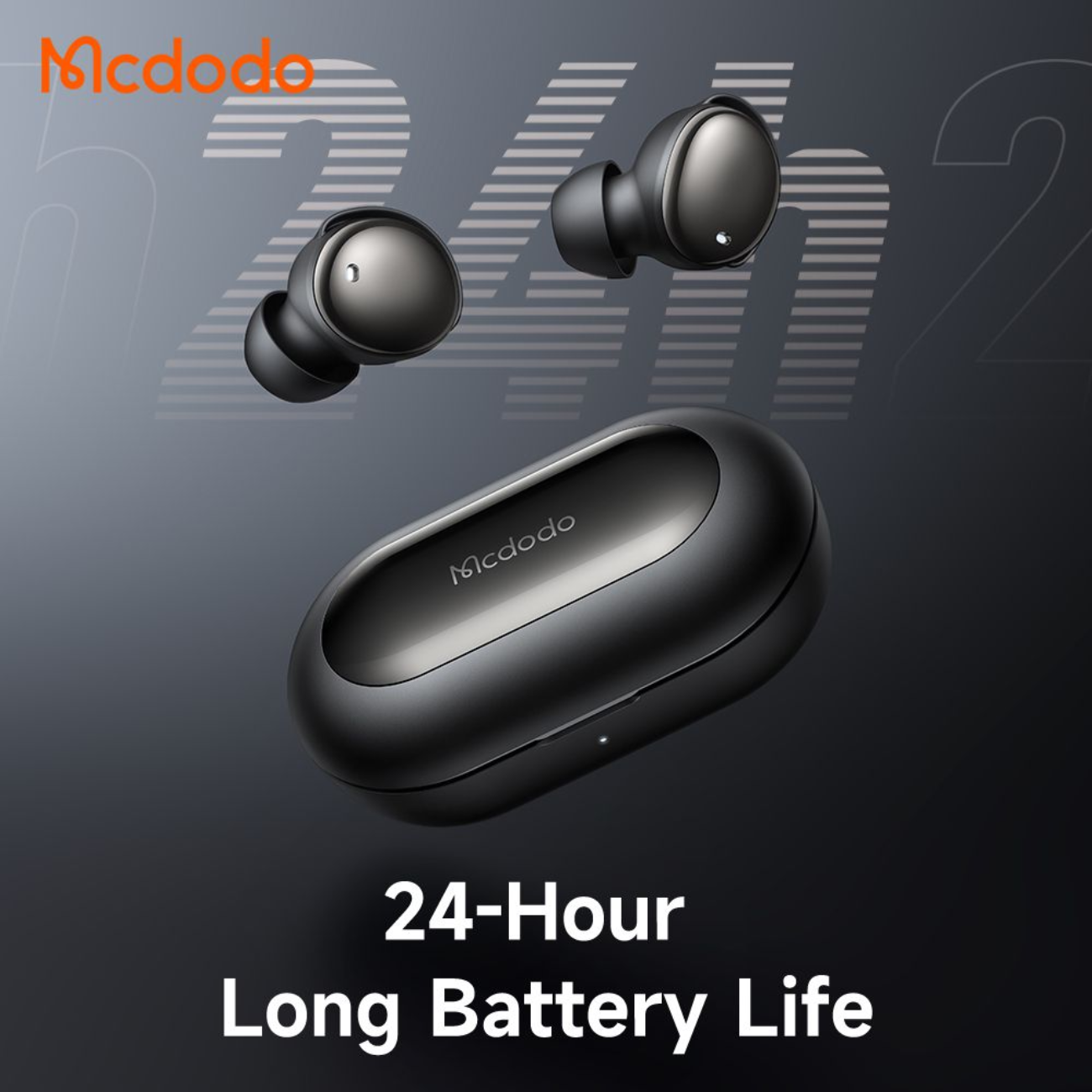 باتری ایربادز HP-449 برند مک دودو، توانایی پخش موسیقی طولانی مدت تا 24 ساعت را به همراه کیس شارژ در اختیارتان قرار میدهد. با هر بار شارژ کامل ایرباد، میتوانید 6 ساعت بدون وقفه به موسیقی گوش دهید.