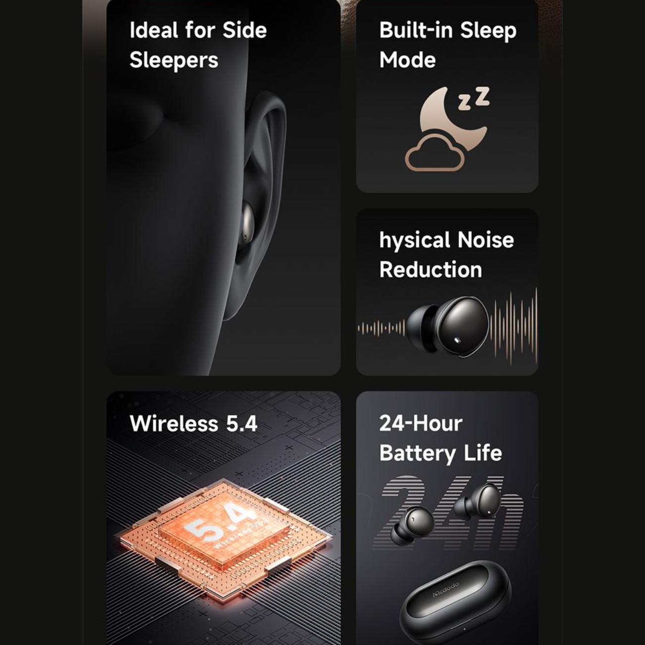 هندزفری کاملا بیسیم مکدودو با فناوری پیشرفتهی حذف فیزیکی نویز (Physical Noise Cancellation)، محیطی آرام و بهدور از سر و صدای مزاحم برای شما فراهم میکند. این قابلیت به شما کمک میکند تا با مسدود کردن صداهای ناخواستهی محیطی، سریعتر به خوابی عمیق و آرام فرو روید. چه در خانه باشید، چه در سفر یا محیطهای شلوغ، مک دودو با ایجاد یک فضای ساکت و بدون حواسپرتی، کیفیت خواب شما را بهبود بخشیده و تجربهای لذتبخش از استراحت را برایتان به ارمغان میآورد. با این ویژگی، دیگر نگران اختلالات صوتی نخواهید بود و میتوانید با خیالی آسوده به خوابی راحت و انرژیبخش دست پیدا کنید.