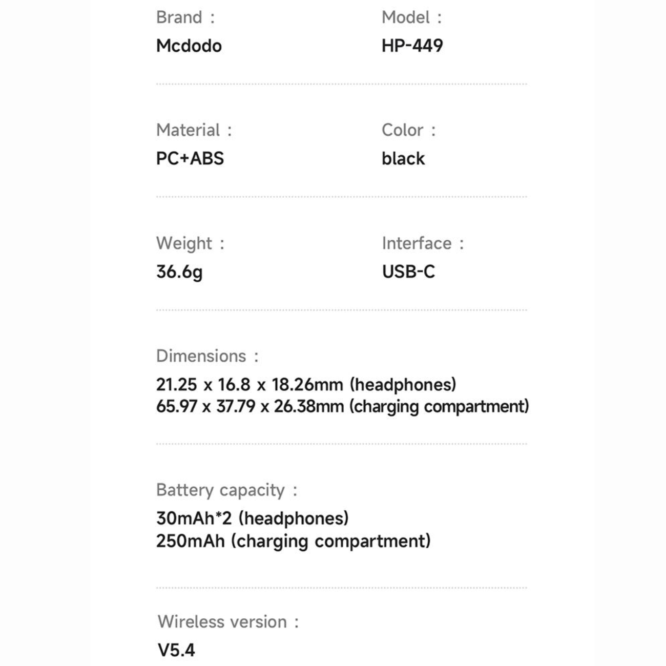 مک دودو برای اتصال به ایرباد وایرلس Mcdodo HP-449، بلوتوث نسخه 5.4 را در نظر گرفته تا تجربه اتصالی سریع را برایتان به ارمغان بیاورد؛ علاوه بر بهبود اتصال بلوتوث 5.4، ذخیره انرژی هم از قابلیتهای آن است و کاهش مصرف باتری را به همراه دارد، البته این قابلیت زمانی قابل اجراست که دستگاه شما از این بلوتوث بهرهمند است. قابلیت اتصال چند دستگاه هم برایتان فراهم است و در صورت تغییر اتصال دستگاه به دستگاهی دیگر نیاز نیست اتصال را از دستگاه قطع کنید. برد مسافتی آن هم حدود 10متر است.