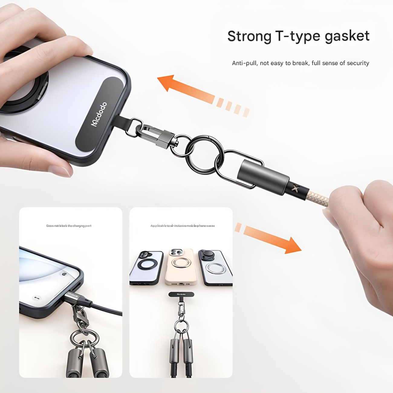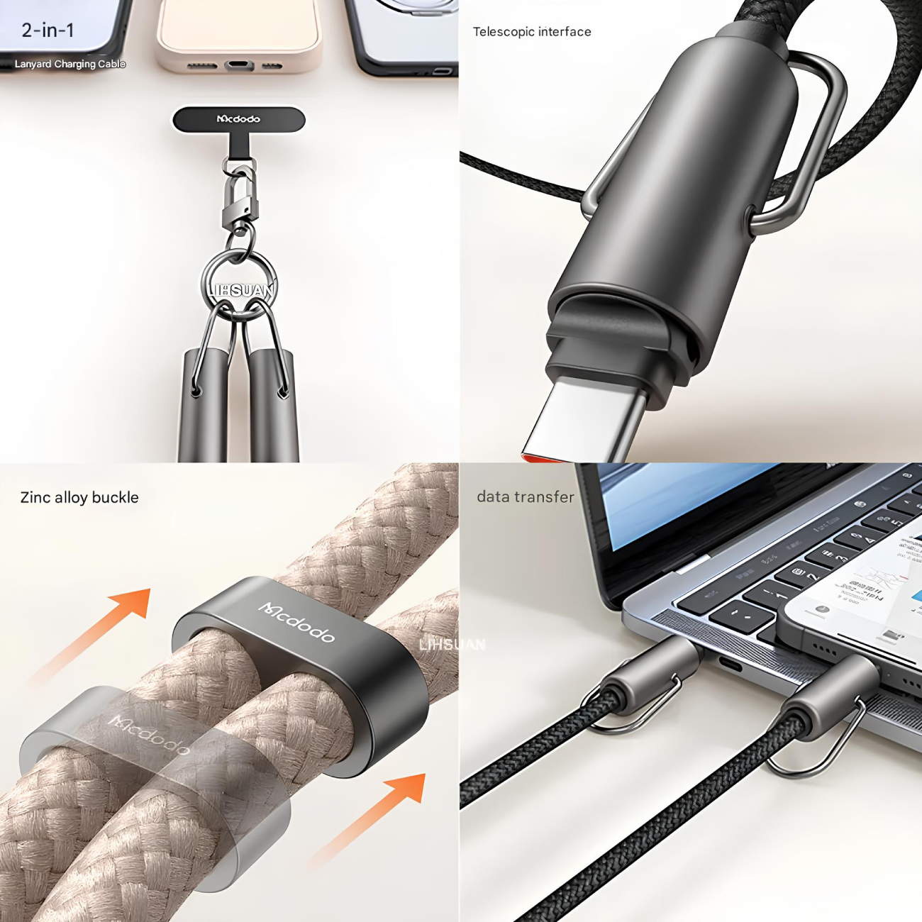 کابل دوسر تایپسی مک دودو با طراحی 2در1 به عنوان هم کابل شارژ و هم بند آویز عمل میکند. این طراحی به شما اجازه میدهد تا در حین استفاده از دستگاههای همراه خود، دستانتان آزاد باشد. این ویژگی برای سفر، کارهای روزمره و حتی خرید بسیار مناسب است. با این کابل، میتوانید گوشی، هدفون یا حتی کلیدهای خود را به راحتی حمل کنید و دیگر نگران افتادن آنها نباشید.