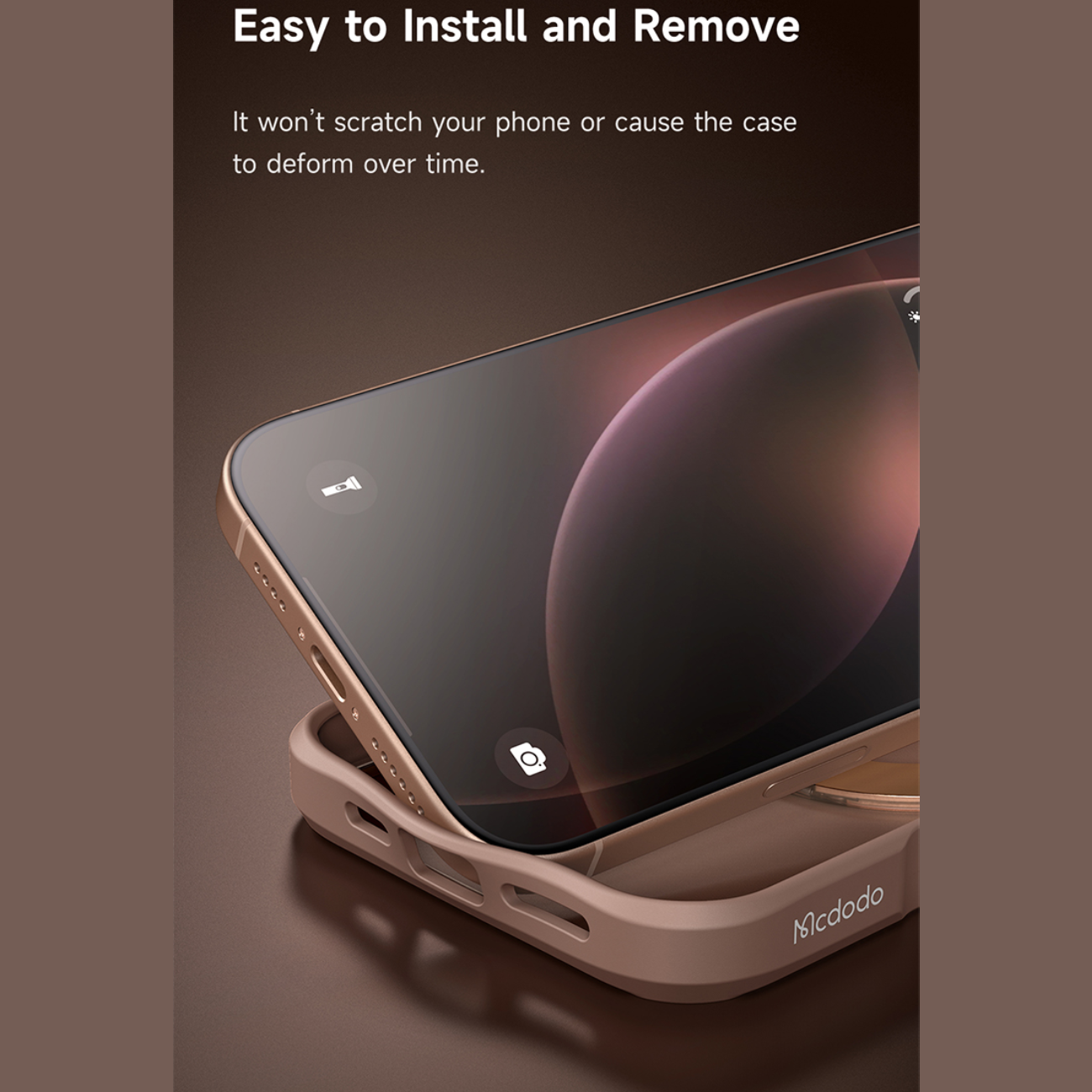 قاب مات مغناطیسی مکدودو به گونهای طراحی شده است که نصب و جداسازی آن بسیار آسان است و به هیچ عنوان به تلفن آسیب نمیزند. این ویژگی این امکان را میدهد که بدون نگرانی از خراشیدگی یا تغییر شکل گارد، به راحتی آن را تعویض کنید. همچنین، طراحی حلقهای این کاور به شما کمک میکند تا از تلفن خود با یک دست استفاده کنید و از آزادی عمل بیشتری برخوردار باشید.