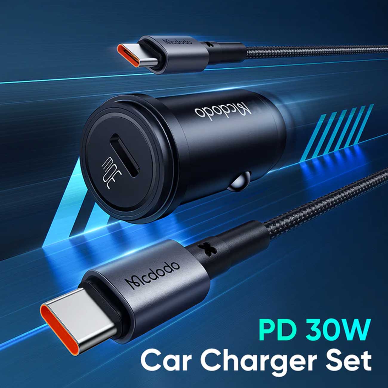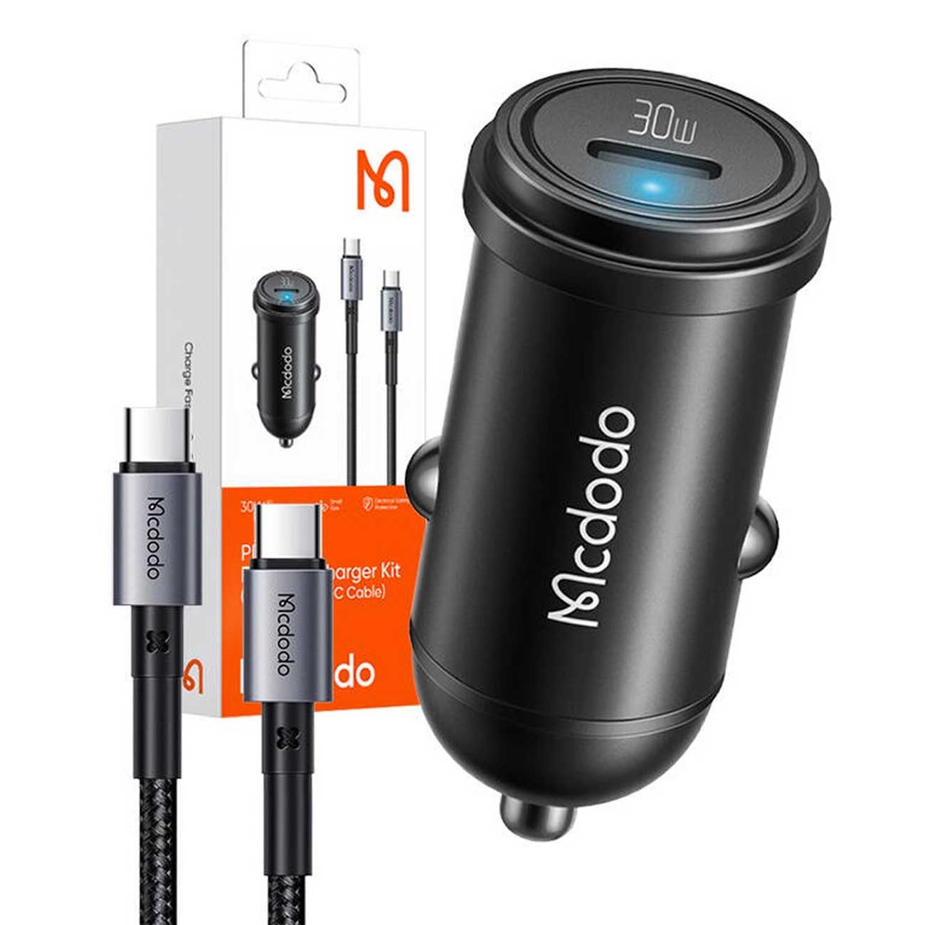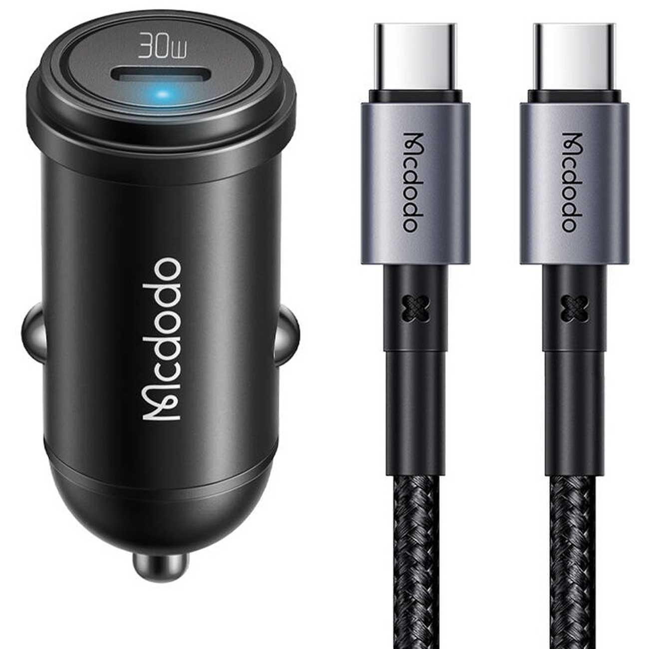 شارژر فندکی فست شارژ ماشین تایپ سی 30 وات با کابل دو سر تایپسی 1.2 متری مک دودو CC-7493