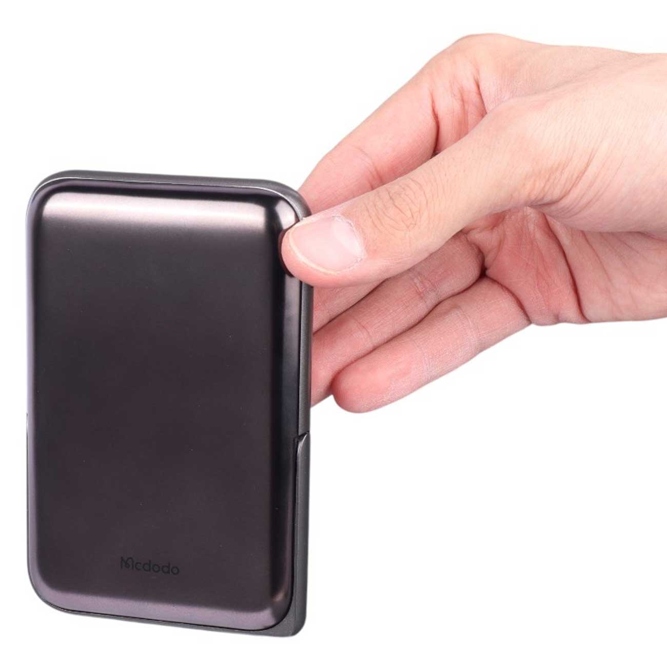 پاوربانک MC-151 محصولی از کمپانی مکدودو است که برای شارژ گوشیهای آیفون و اپل واچ طراحی شده؛ طراحی بسیار مینیمالی دارد و بلافاصله بعد از قرار گرفتن در پشت گوشیهمراه فرایند شارژ را آغاز میکند. اندازه این محصول به قدری کوچک است که به راحتی درون جیب جا میگیرد و حمل راحتی دارد؛ همچنین بعد از اتصال به گوشی مانع کار کردن با دوربین آن نمیشود.