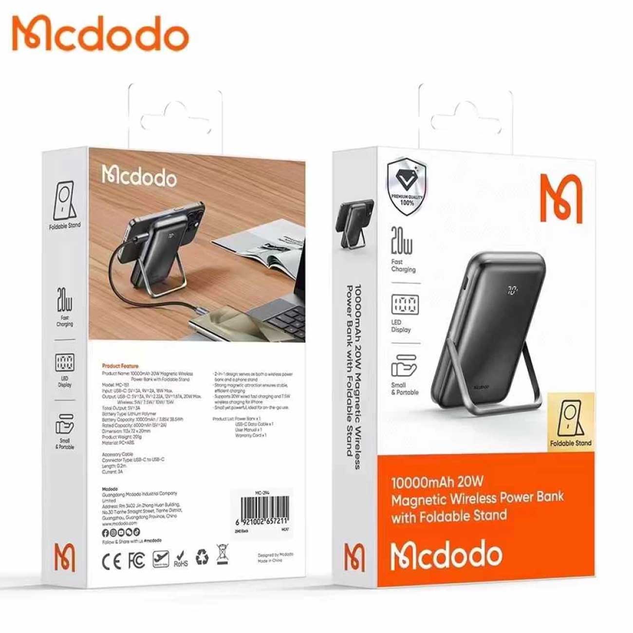 پاوربانک وایرلس 15 وات و تایپ سی 20 وات فست شارژ 10000 مک دودو MC-151