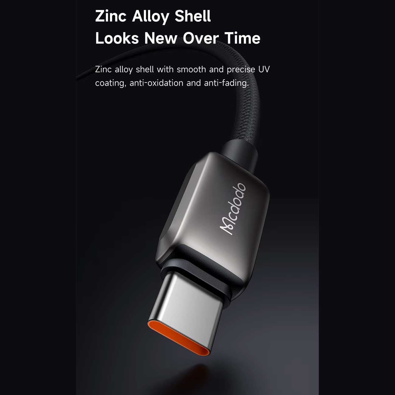 آنچه این محصول مک دودو را خاص میکند، مواد اولیه ساخت و شکل ظاهری ویژهی آن است. این کابل 120 سانتی متر طول دارد که راحتی عمل خوبی برای کاربر فراهم میآورد. ساختمان درونی این کابل از کنار هم قرار گرفتن رشتههای سیم مسی تشکیل شده که انتقال پایدار جریان را به همراه دارد؛ به دور این رشتهسیمها پوششی نارسانا و مقاوم دربرابر کشش و پارگی کشیده شده است؛ علاوهبر این روکش درونی، روکش دیگری از جنس الیاف بافته شده بسیار مقاوم اطراف کابل را در بر دارد و کانکتورها هم از آلیاژ روی ساخته شده اند و ضد اکسیداسیون و سایش هستند.
