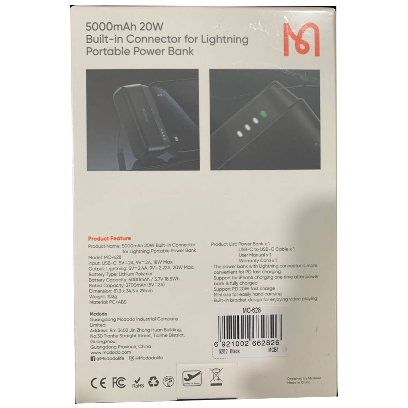 پاوربانک 5000 مک دودو باطراحی ساده امکانات فراوانی را در اختیار کاربران قرار می دهد. این پاور بانک از جنس پلی کربنات نسوز و ABS با کیفیت و با ظرفیت 5000 میلی آمپر می باشد و باطری آن لیتیوم پلیمری ست. دارای دو پورت داخلی و خارجی با قدرت 20 و 18 وات است.