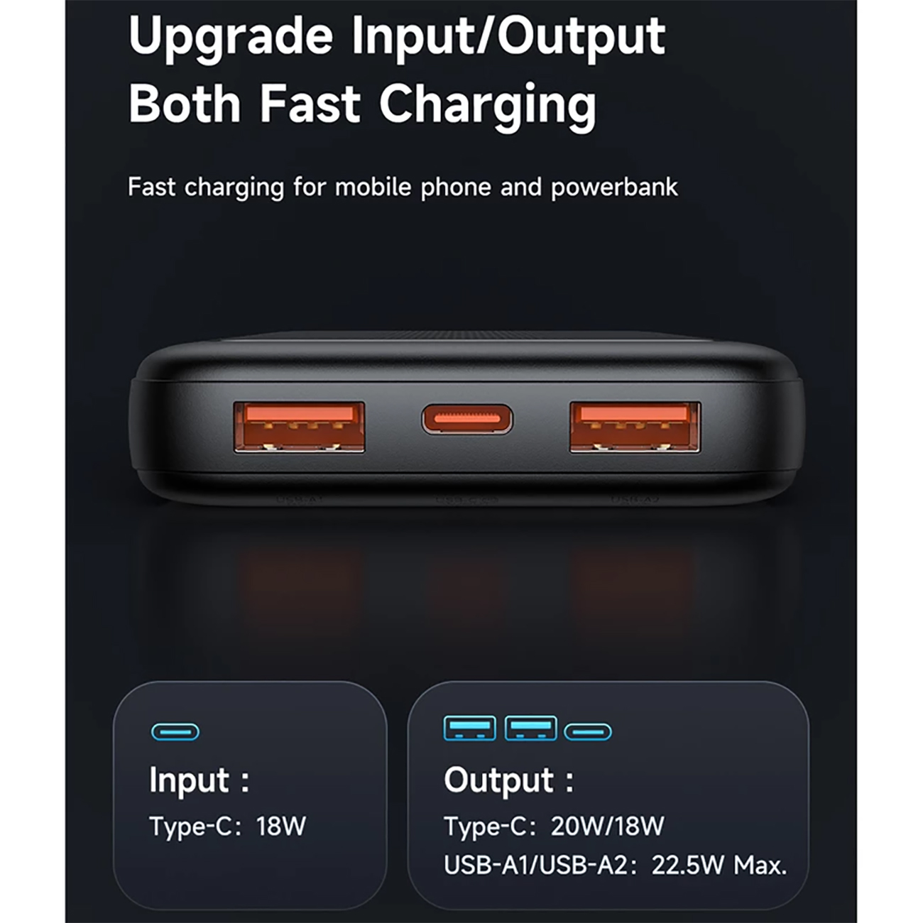 پورت تایپ سی هم امکان شارژ خود پاوربانک را دارد و هم شارژ موبایل و تبلت و بعنوان پورت ورودی نیز شناخته شده است.