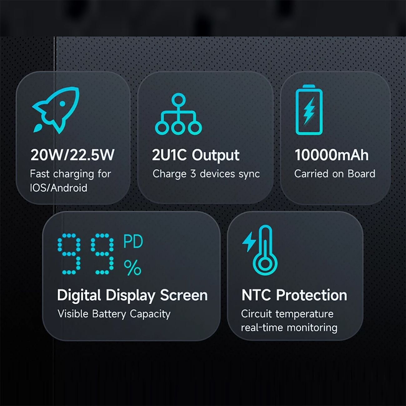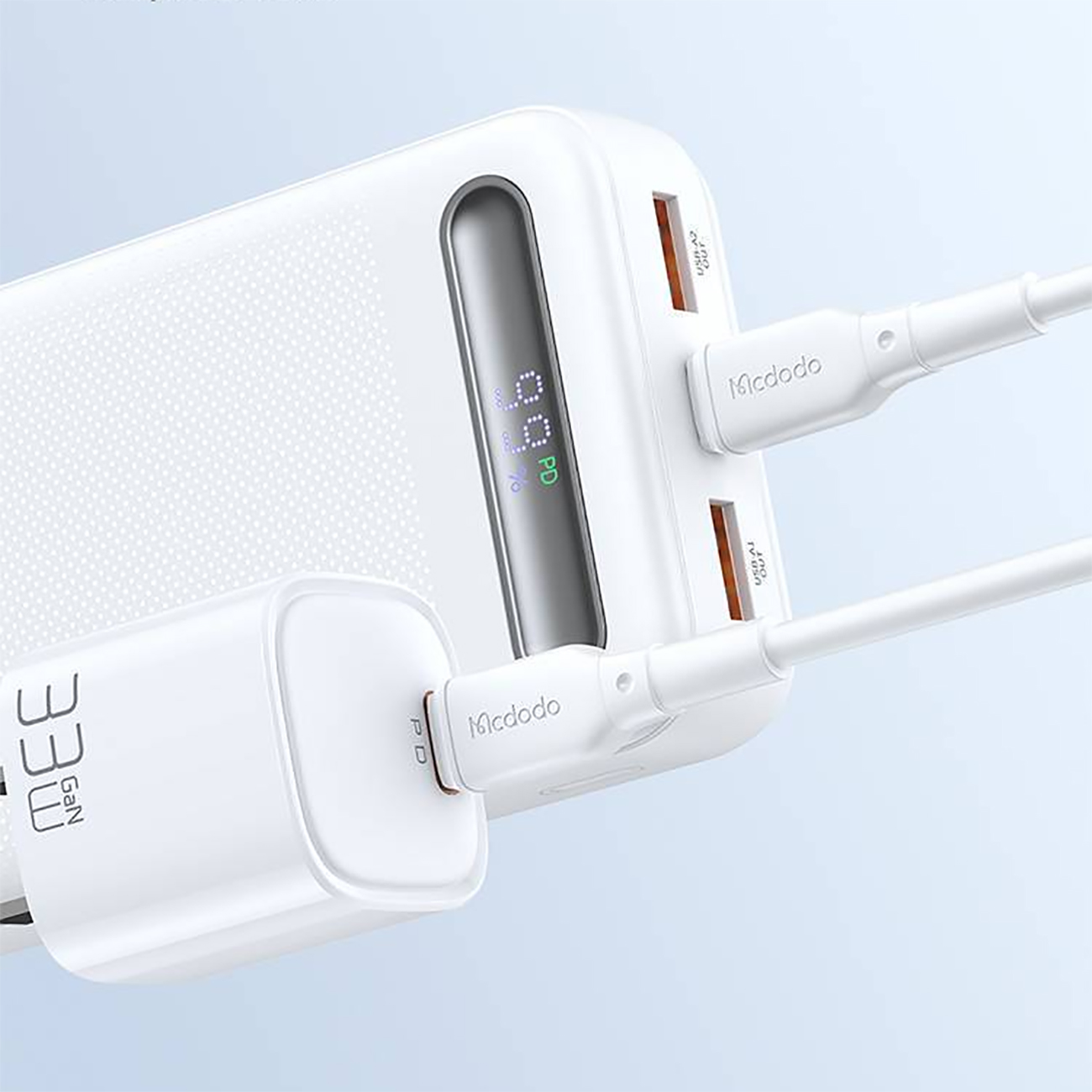 پاوربانک برند مک دودو از پروتکلهای شارژ سریع PD/QC/SCP/FCP/AFC/VOOC/Apple پشتیبانی میکند و با انواع موبایل و تبلت اندرویدی و آیفون سازگار است. این سوپر شارژر 22.5 واتی، ایده ال برای سفر میباشد.
