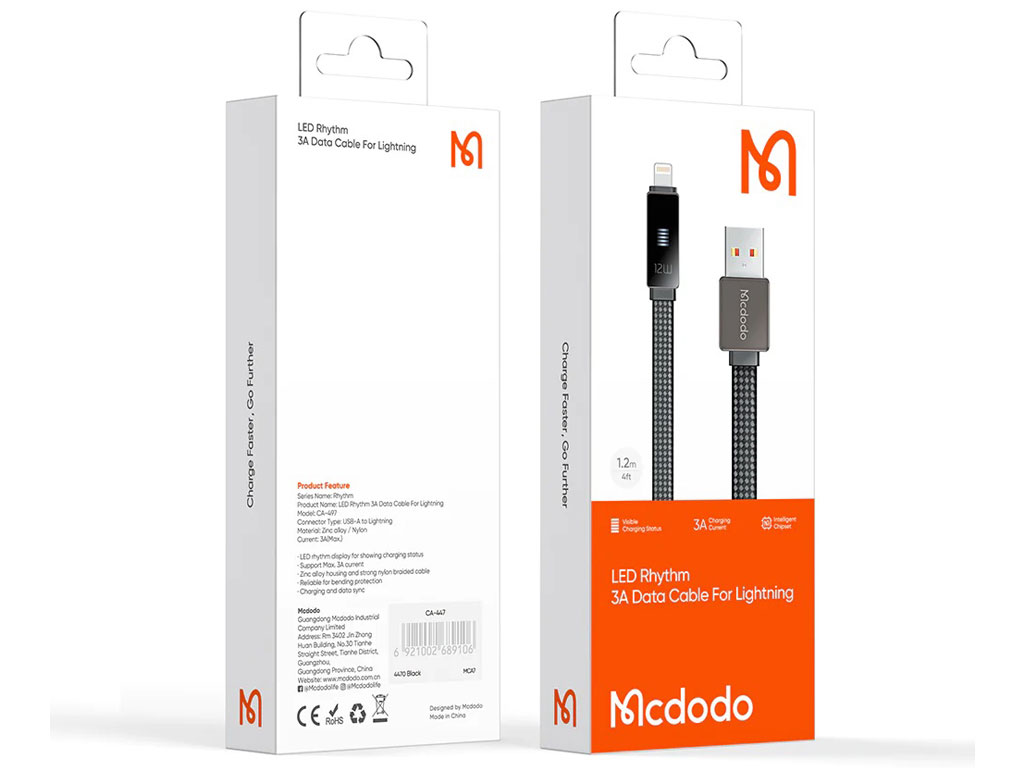 کابل شارژ لایتنینگ 3 آمپر 1.2 متری مک دودو Mcdodo LED Rhythm Data Cable CA-497