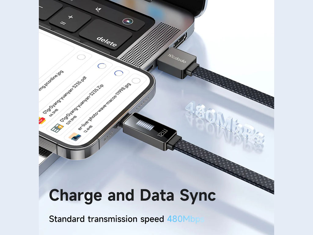 در ضمن کابل دیتا و شارژ سریع 3 آمپر مک دودو قابلیت انتقال داده را هم در اختیارتان قرار میدهد و با سرعتی معادل 480 مگابایت بر ثانیه یک گیگ اطلاعات را در 30 ثانیه بارگذاری میکند.