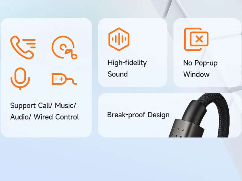 | سایر ویژگیها | پشتیبانی از هدفون های سیمی 3.5 میلی متری پشتیبانی از برقراری تماس تلفنی پشتیبانی از کنترل از طریق کابل هدفون صدای با وضوح به واسطه تراشه DAC داخلی سیم مسی با کیفیت برای انتقال پایدار صوت بدون پاپ آپ برای iOS16 پوسته نشکن، مقاوم در برابر خم شدن و ضد زنگ کابل با روکش نایلون بافته شده مقاوم |